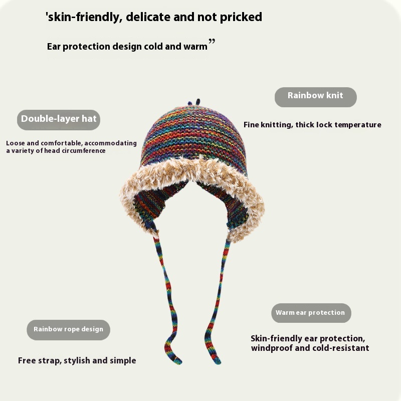 Autumn And Winter Warm And Versatile Small Wool Hat Japanese Sweet Color Beanie Earmuffs Female