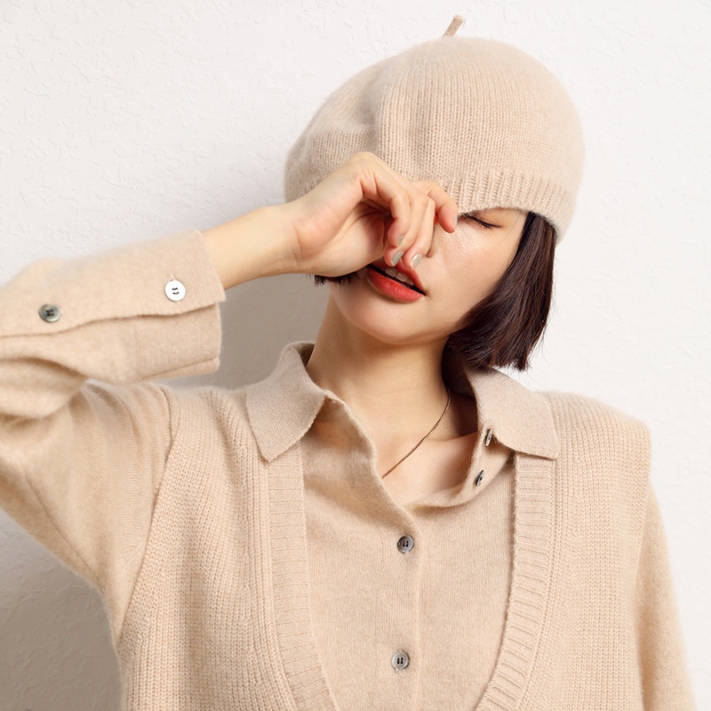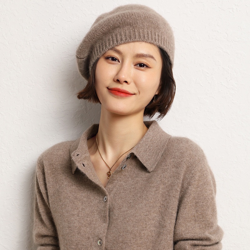 Cashmere Solid Color Outdoor Warm Round Beret Casual Knitted Hat