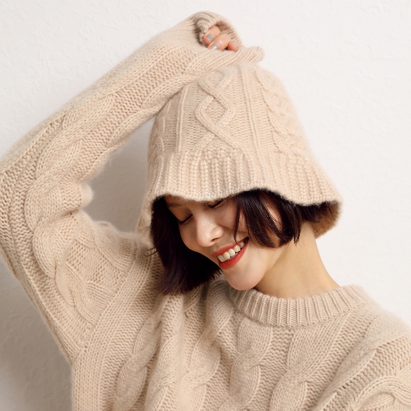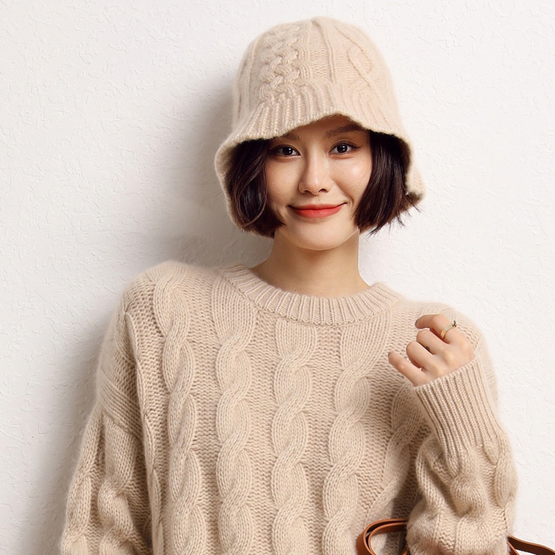 Cashmere Twisted Flower Fisherman Hat Warm Knitted Hat