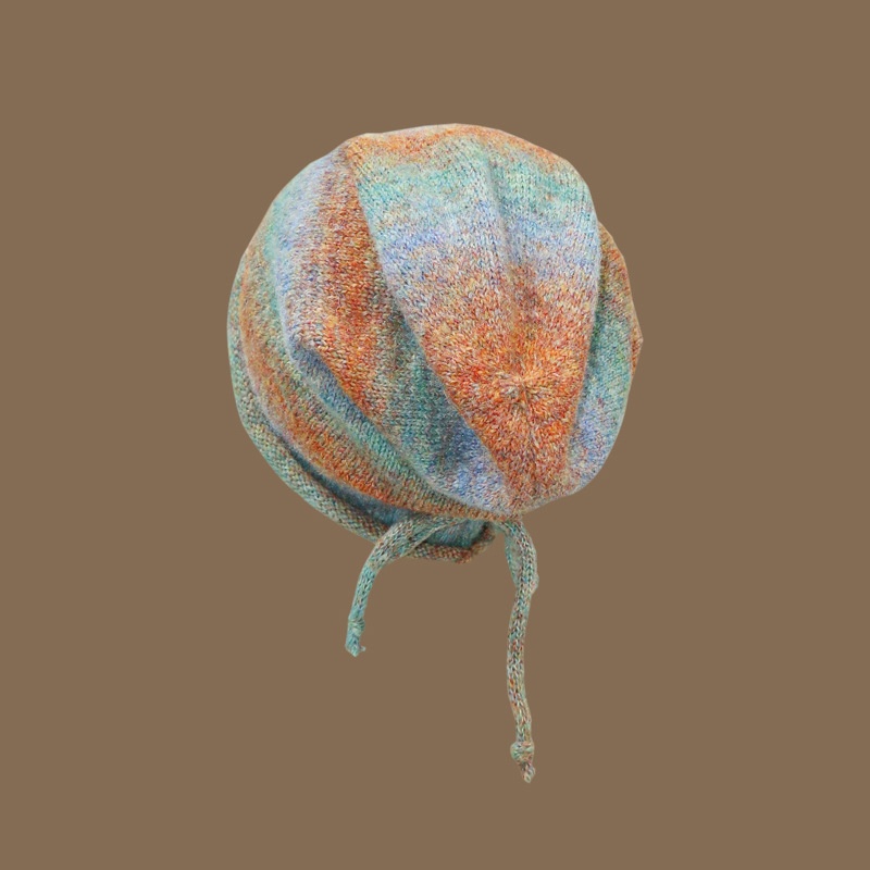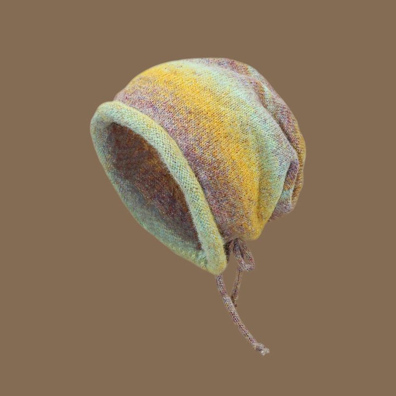 Wool Color Knitted Wool Hat Fashion Gradient Drawstring Pile Hat