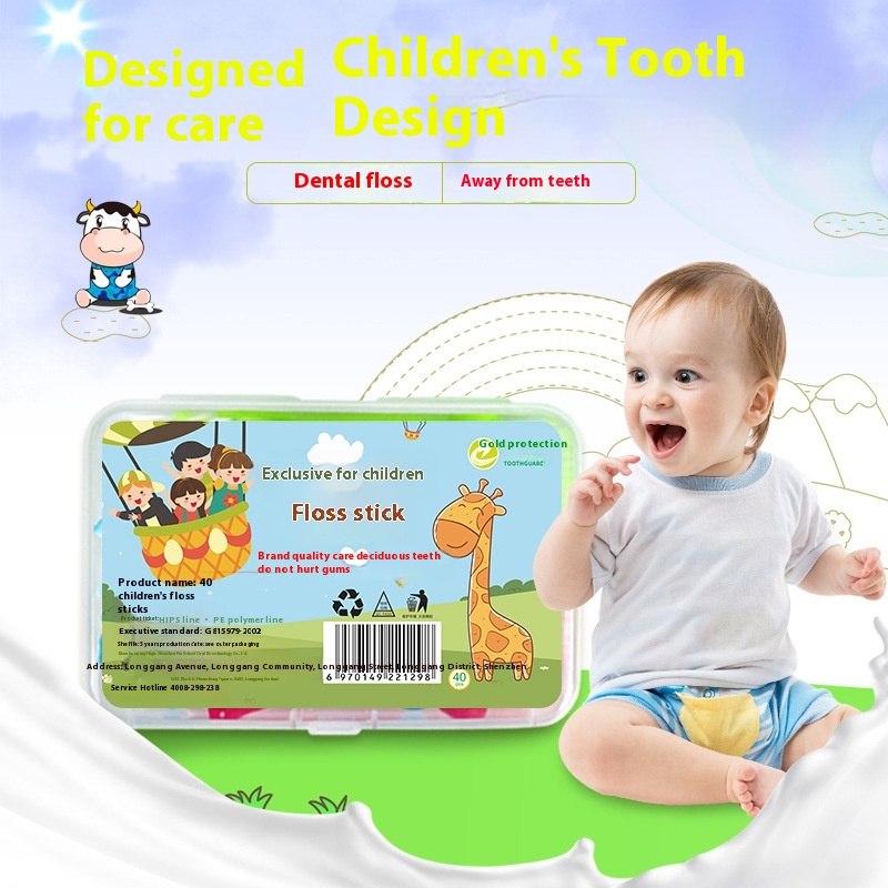 Children's Dental Floss40 Boxes Cartoon Dental Floss Stick High Tensile Strength Ultra-fine Baby Toothpick