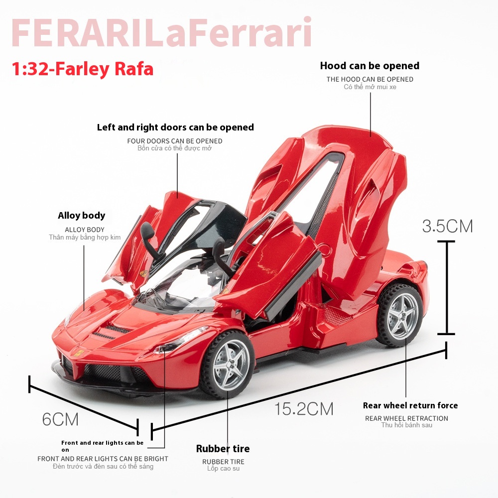 Jiaye Alloy1:32 Ferrari La Ferrari Super Sports Car Model Pull Back Boy Toy Car With Sound And Light Model Ornaments