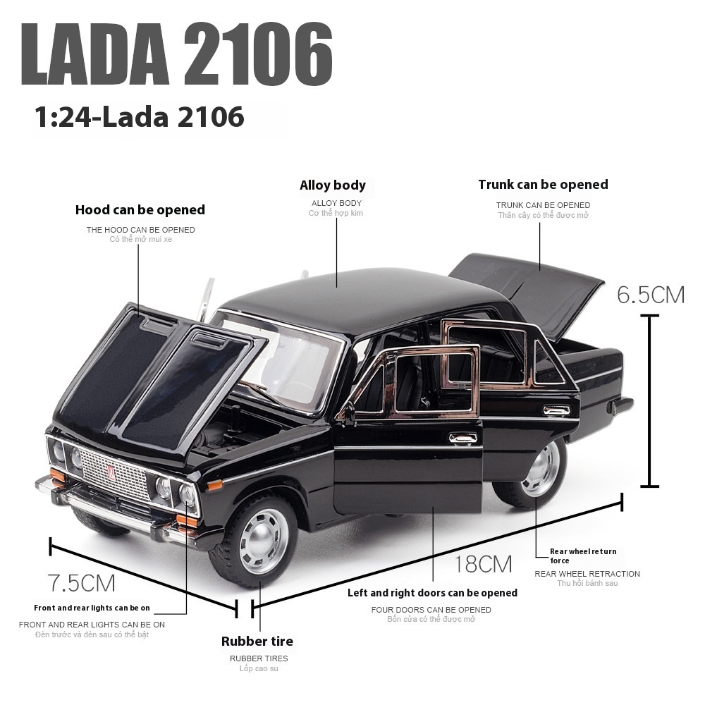 Jianyuan Alloy Car Model1:24 Lada Retro Classic Car Sound Pull Back Toy Car Music Model Ornaments Collection