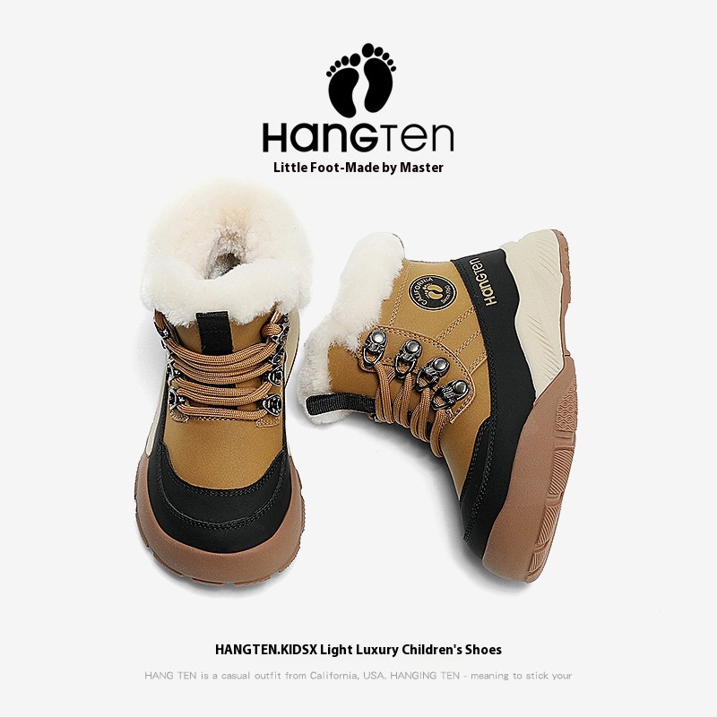 Hang Ten/Huan Teng Children's Snow Boots Thickened Cotton Shoes Outdoor Non-slip Winter Boys And Girls Brand Medium And Large Children's Shoes