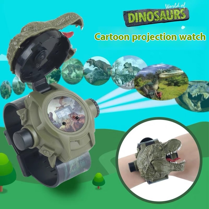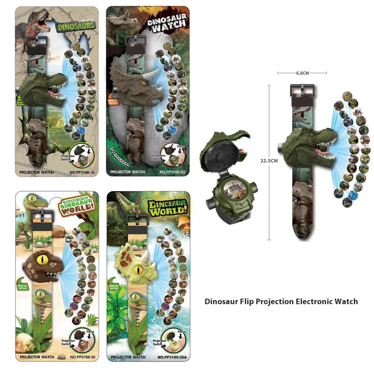 Dinosaur Cartoon3 DProjection Watch24 Pictures With Flip Cover Creative Children's Luminous Watch
