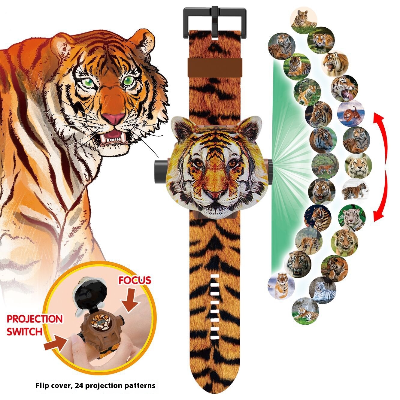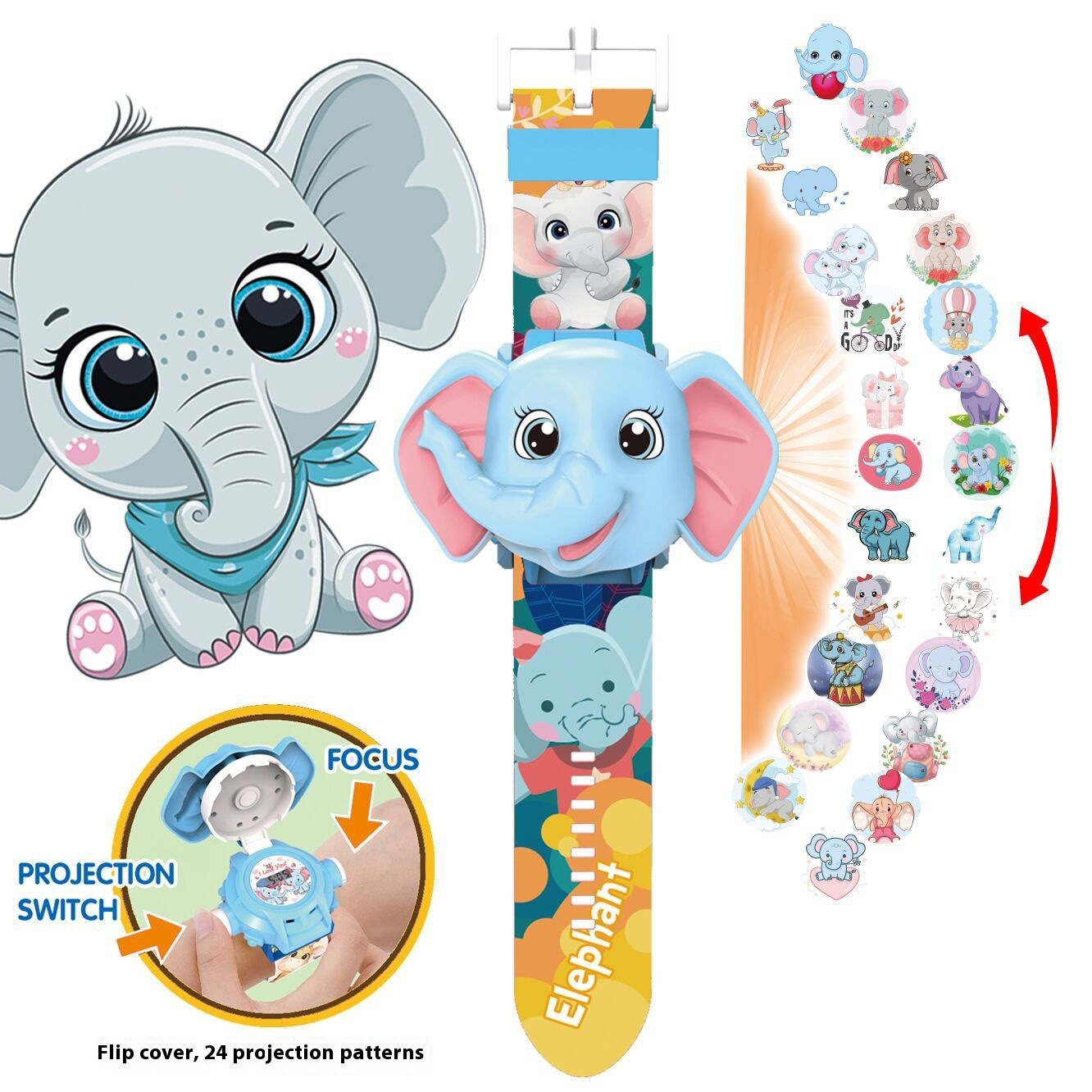 Children's Electronic Watch Cartoon Projection Elephant Tiger Kindergarten Elementary School Boys And Girls Educational