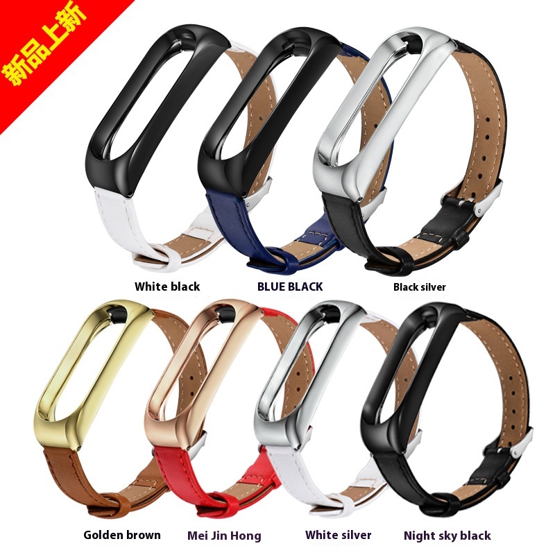 Suitable For Xiaomi Mi Band4 Watch Strap Genuine Leather Smart Band3 Universal Watch Strap Genuine+ Metal Case Replacement Strap