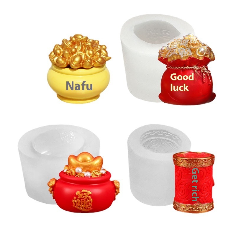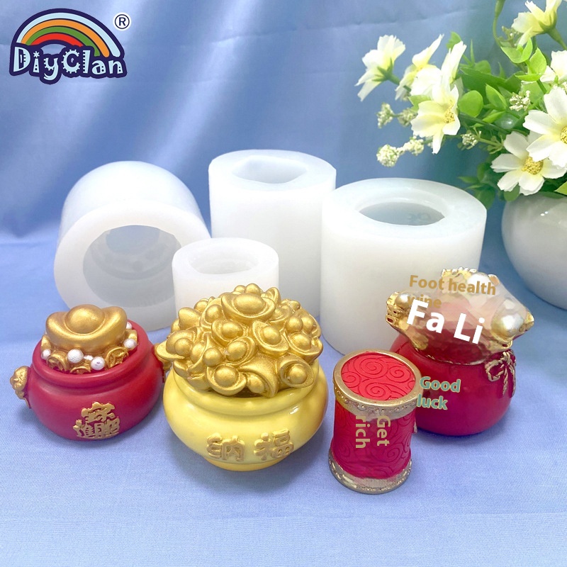 Treasure Bowl And Fortune Bag Silicone Mold:DIY3 DGold Ingots Bowl And Plaster Crafting Tool