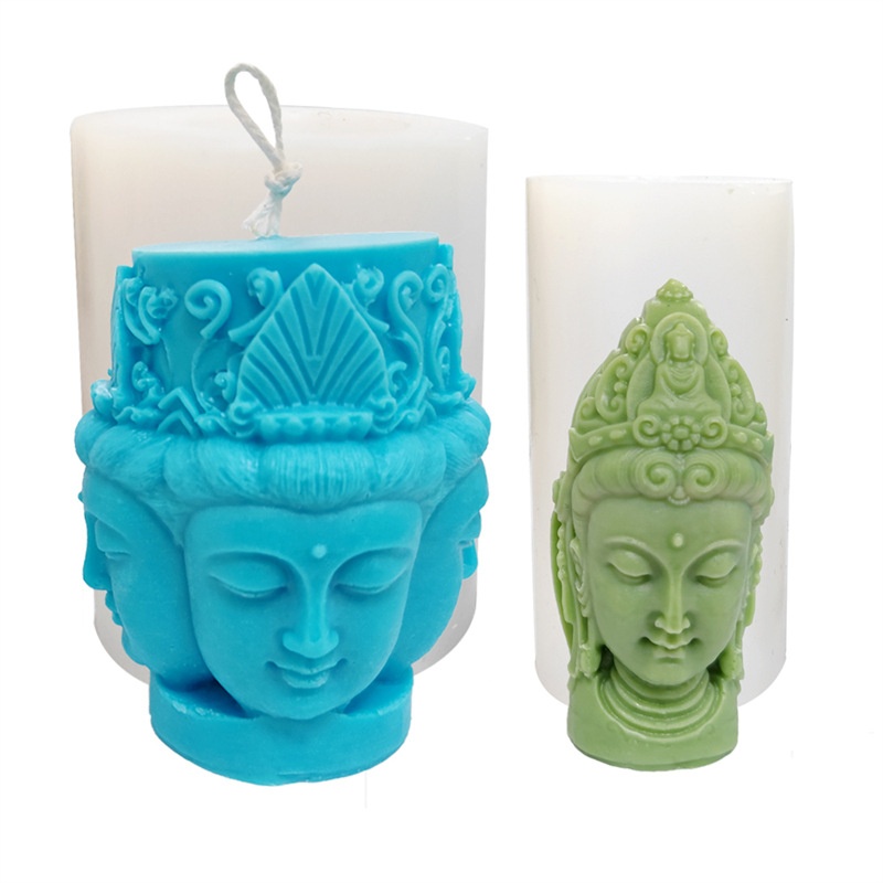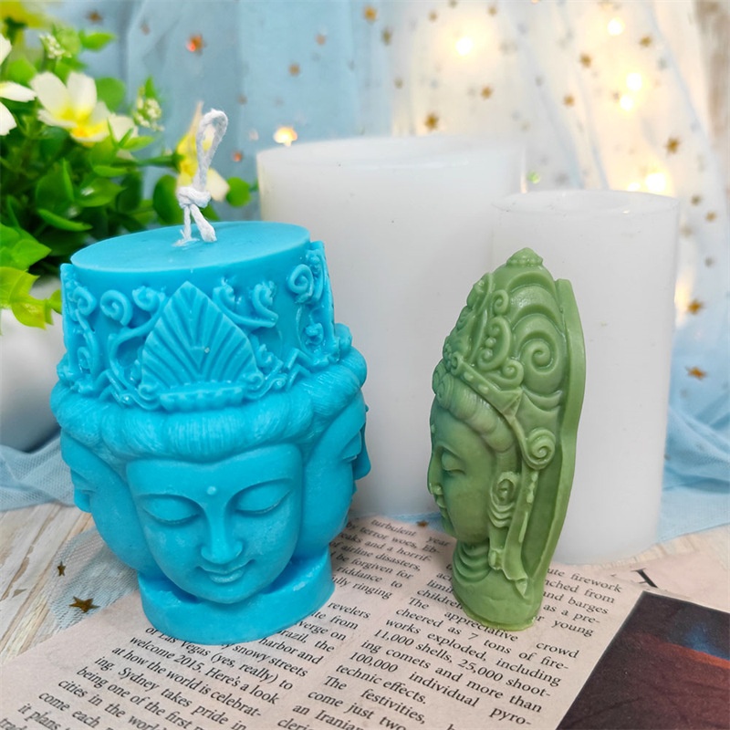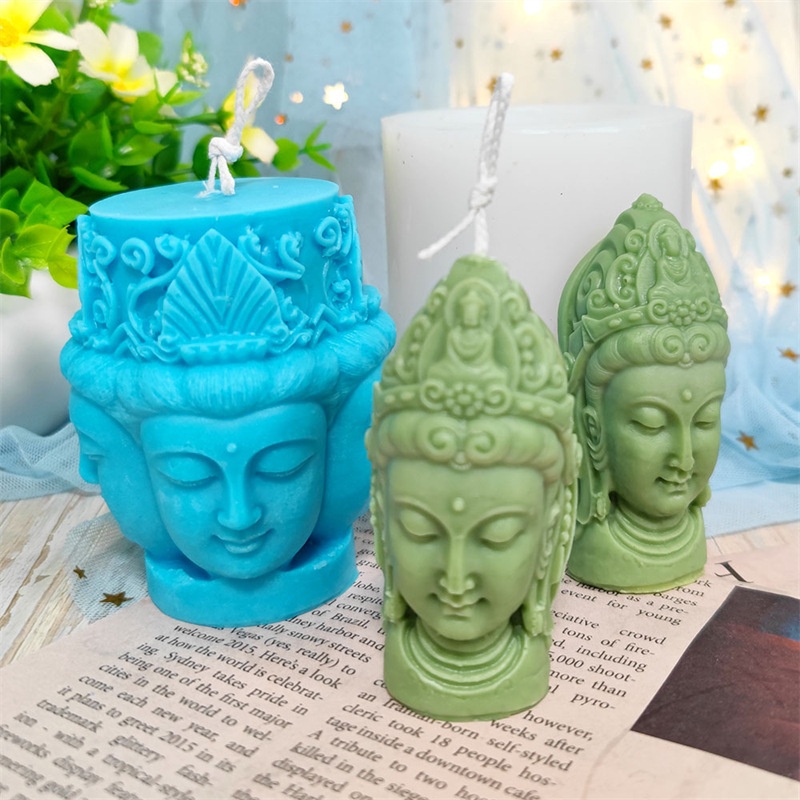3 DFour-faced Buddha Silicone Mold Food Grade Aromatherapy Candle Silicone Resin Epoxy Decoration