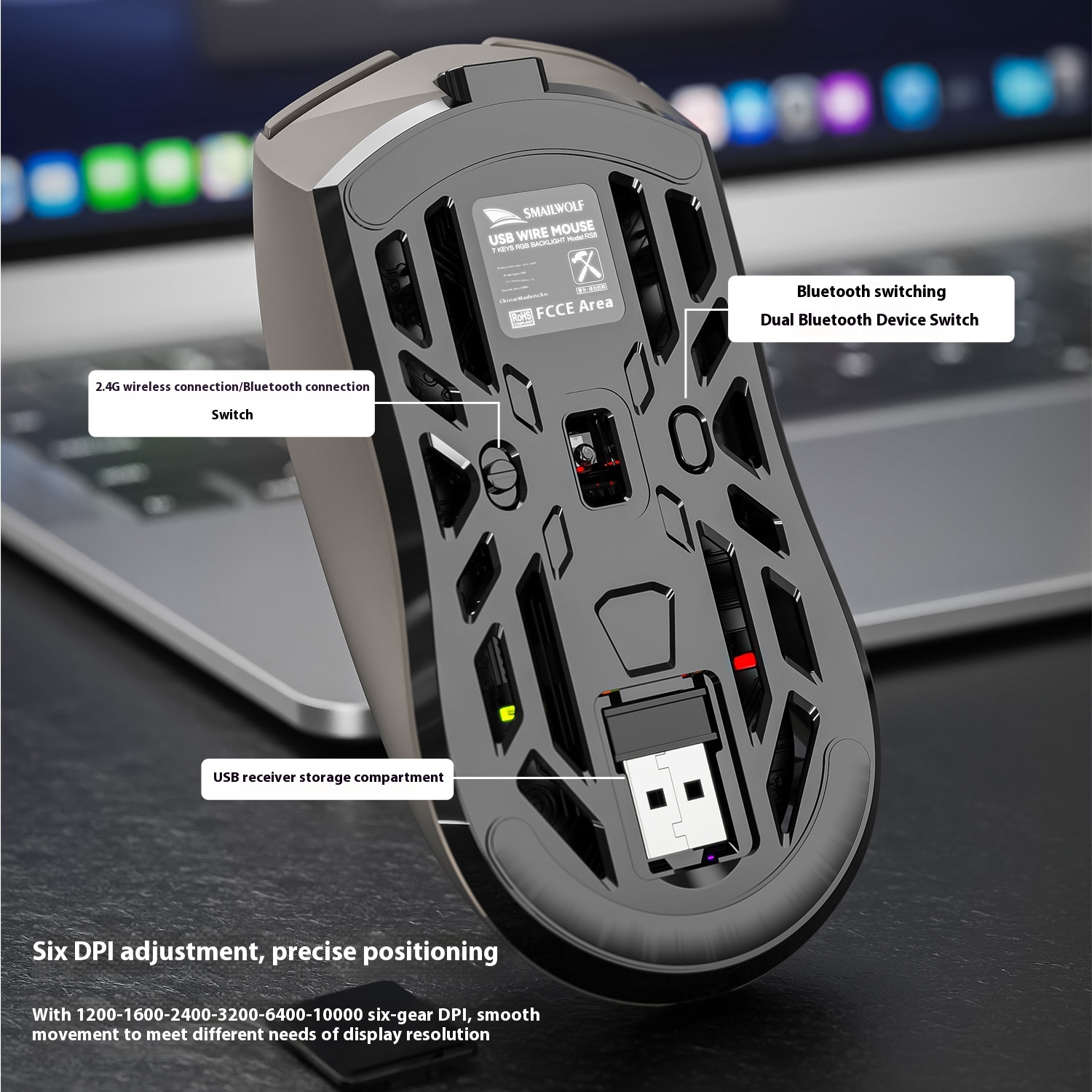 SMAILWOLFRS8 Bluetooth Wireless Three-mode Mouse E-sports Game Lightweight Computer Office Universal