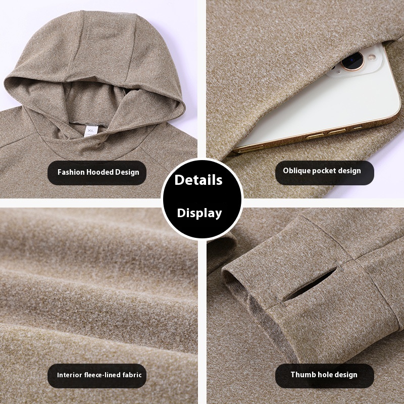 Autumn And Winter Running Sports Hooded Warm Sweater Long Sleeve Coat Outdoor Skiing Fleece-lined Thumb Hole Fitness Training Suit