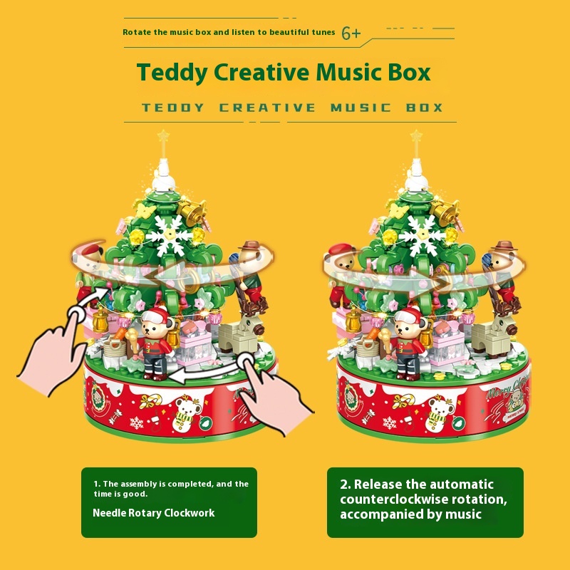 Penlos Product881305 Teddy Bear Christmas Music Box Small Particle Assembled Building Blocks Toy Music Box