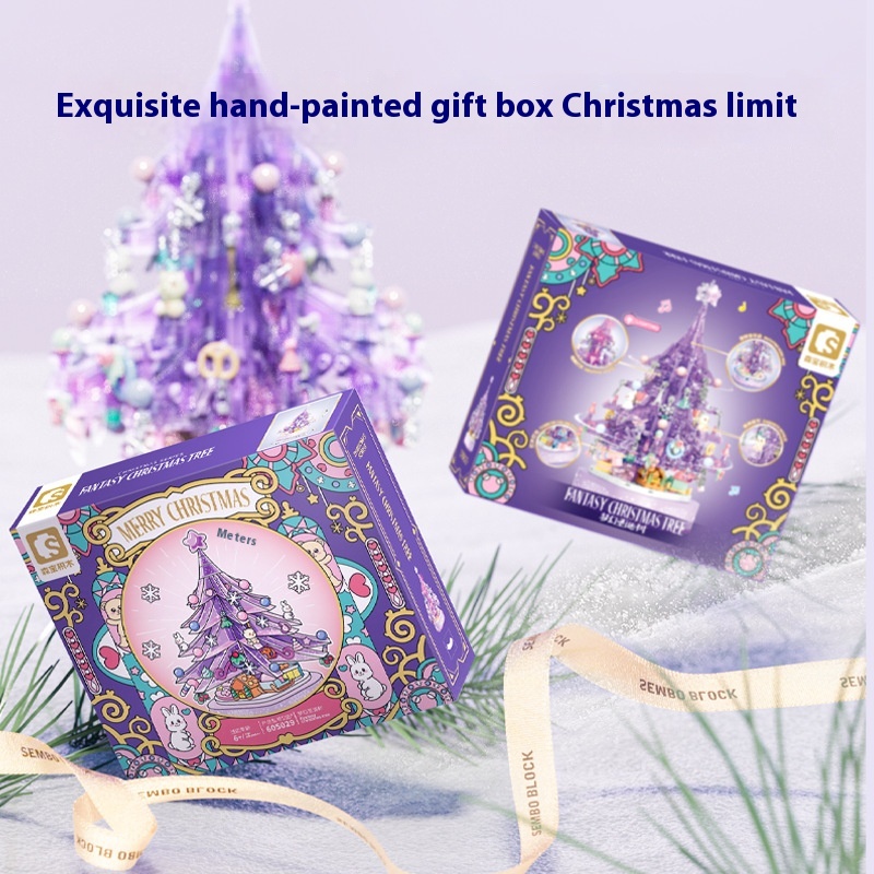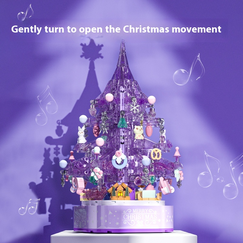 Senbao605029 Dream Christmas Tree Music Box Assembly Model Children's Small Particles Assembled Building Blocks Toy Gift