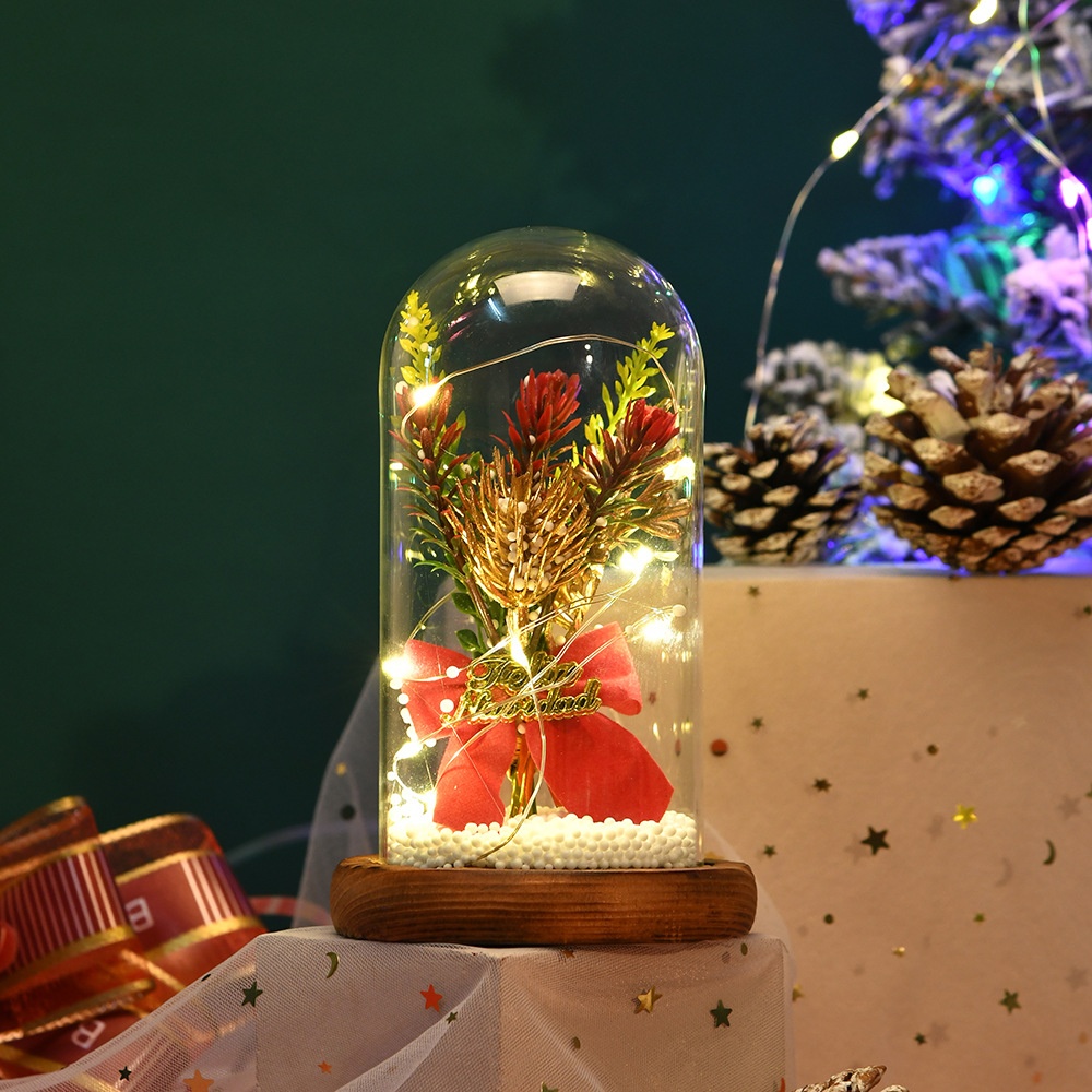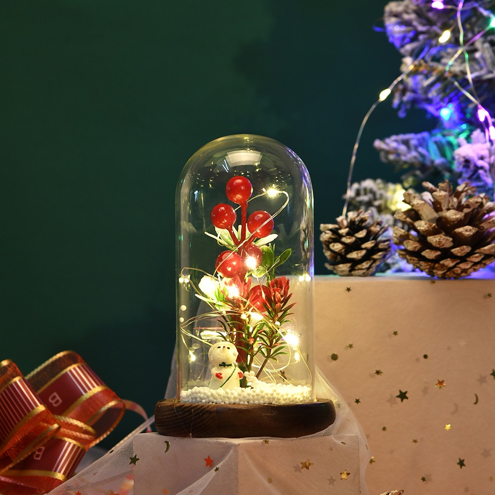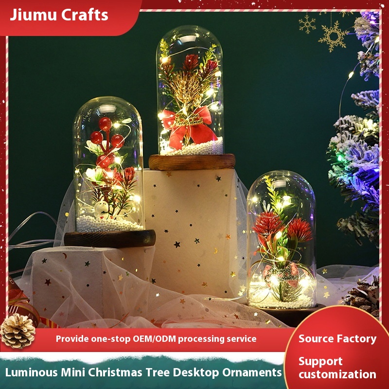 Christmas Gift Glass Cover Desktop Creative Small Ornaments Luminous Mini Christmas Tree Christmas Decorations