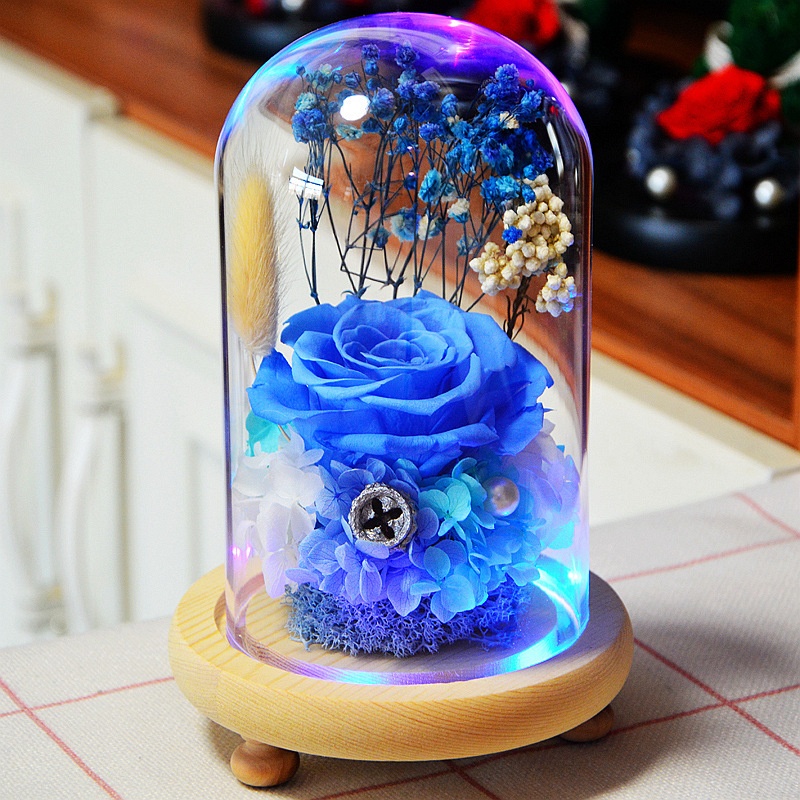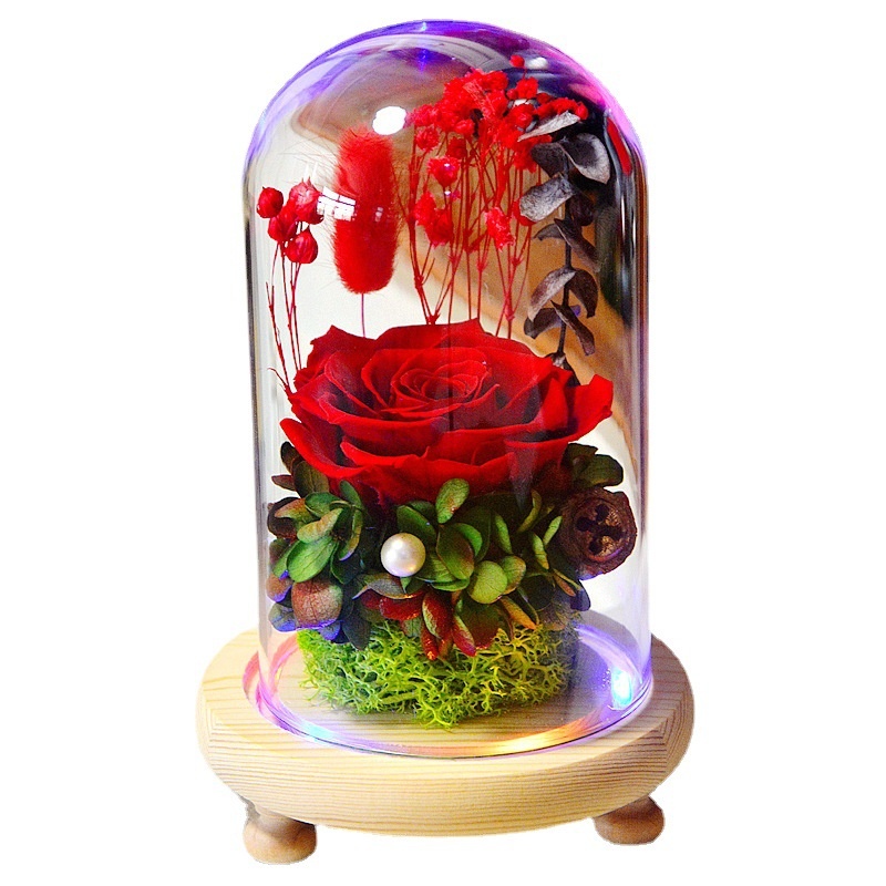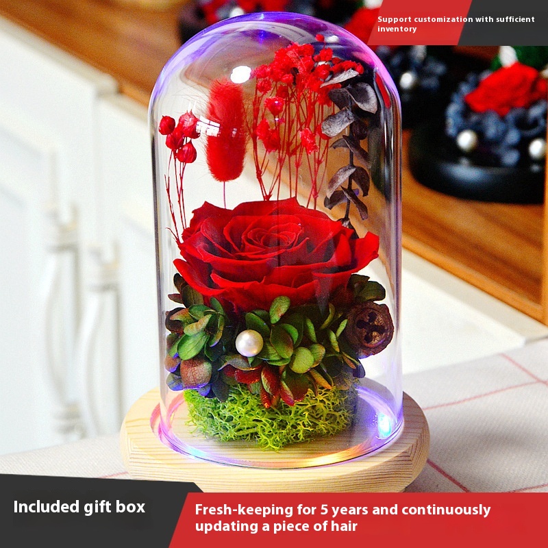 Glass Cover Immortal Flower Finished Gift Box Valentine's Day Rose Fresh Flower Dried Flower Ornaments Christmas Creative Gift