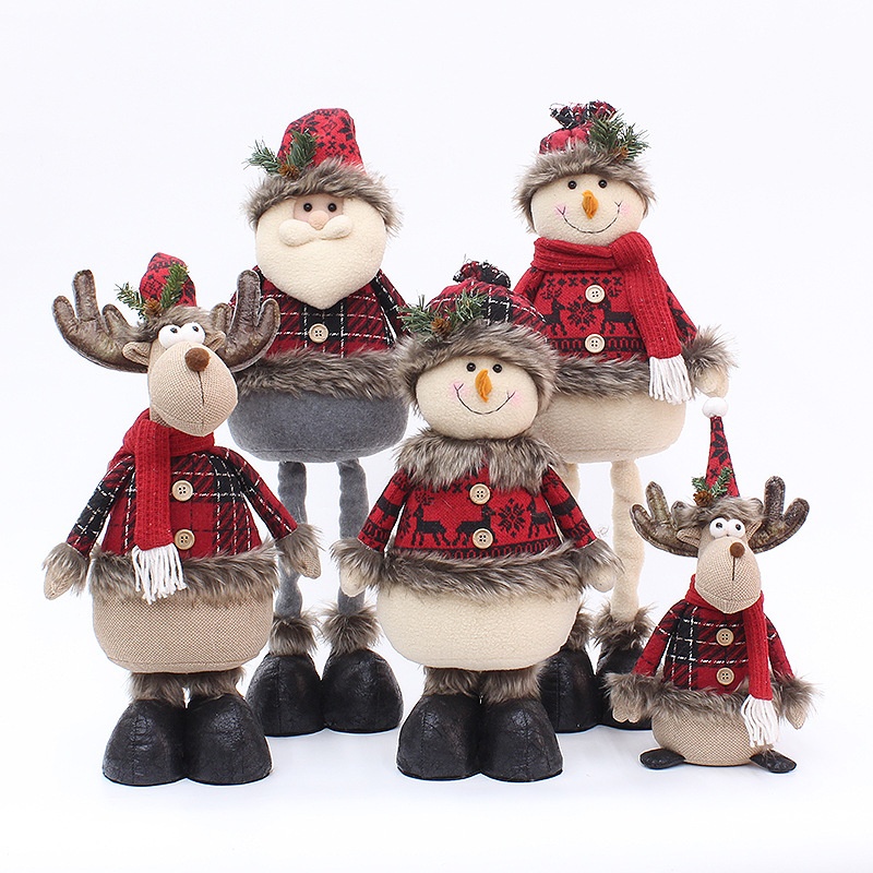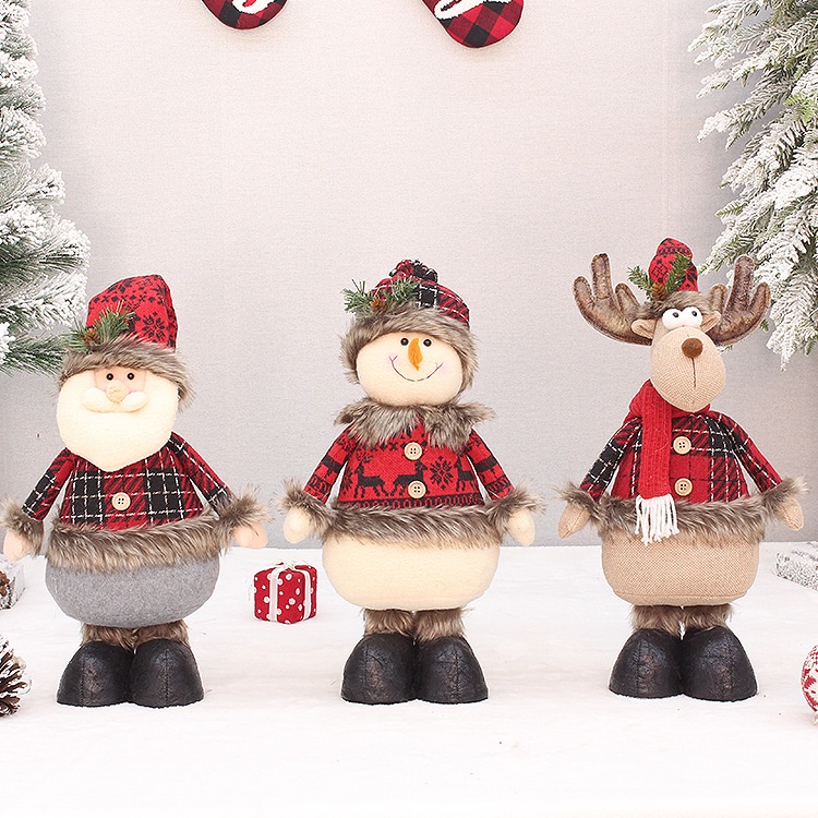 Christmas Telescopic Doll Red Plaid Cloth Doll Gift Old Man Snowman Shopping Mall Decoration Decoration Supplies