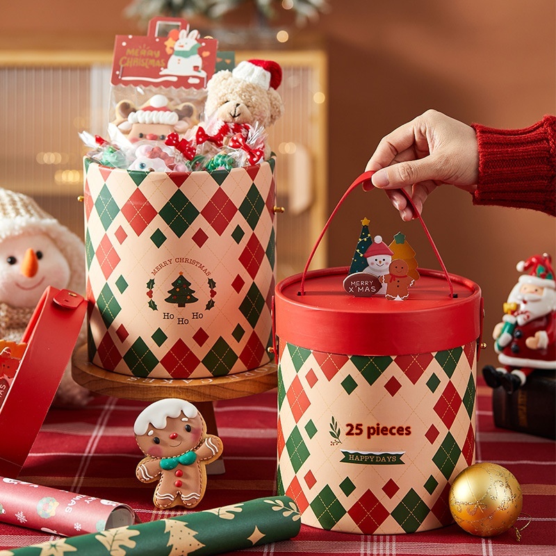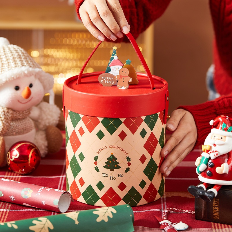 Christmas Gift Box Gift Box Souvenir High-end Christmas Eve Apple Portable Red Hug Bucket Packaging Empty Box