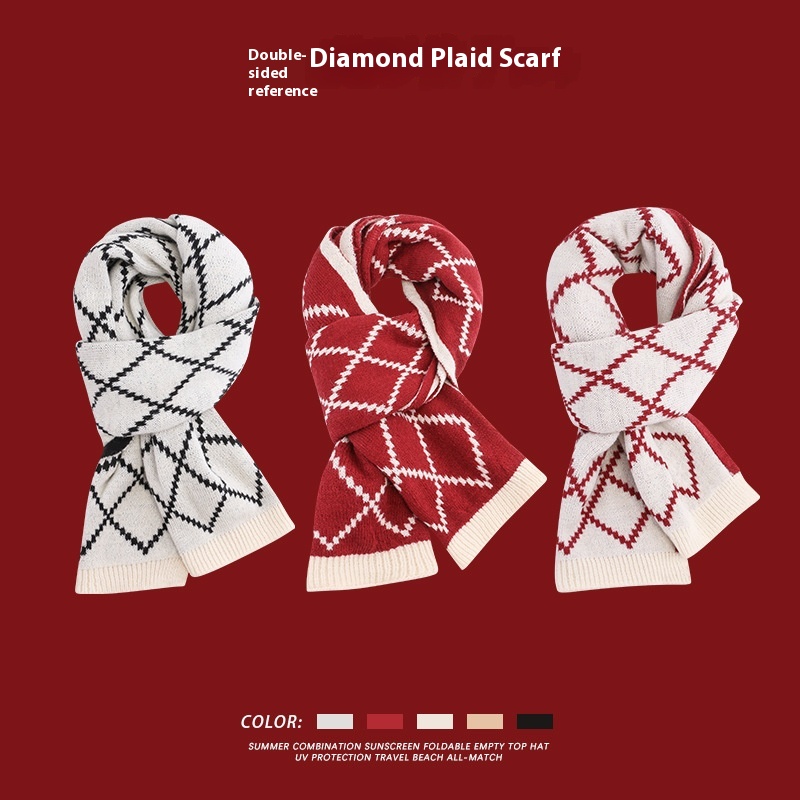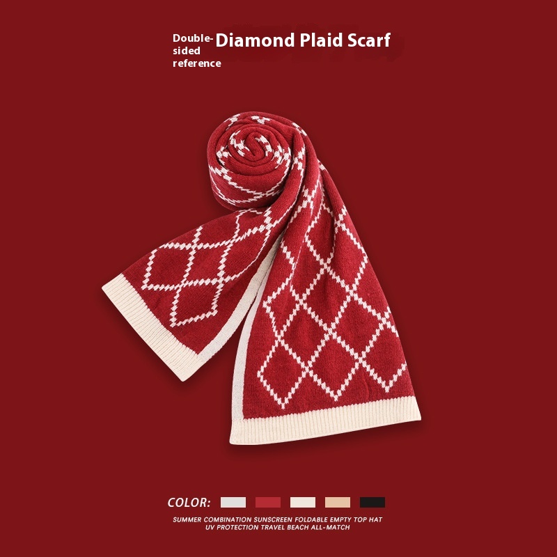 Winter Scarf Christmas Plaid Versatile Shawl Wine Red Imitation Cashmere Scarf Soft Waxy Warm