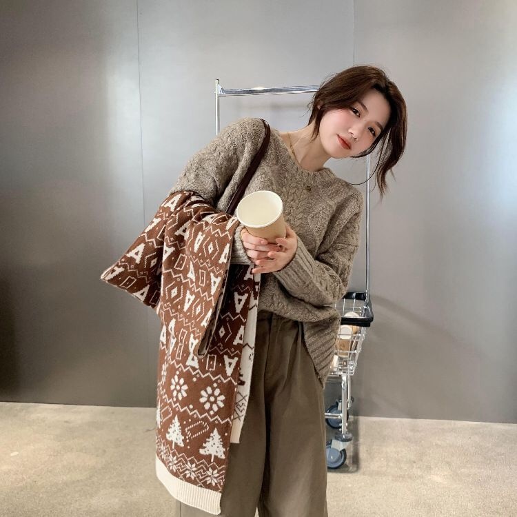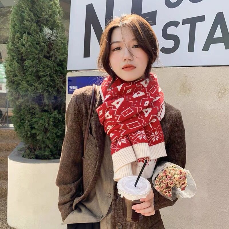 Christmas Scarf Women Autumn And Winter Wool Scarf Knitted Scarf Red Warm Women Winter Couple Korean Scarf