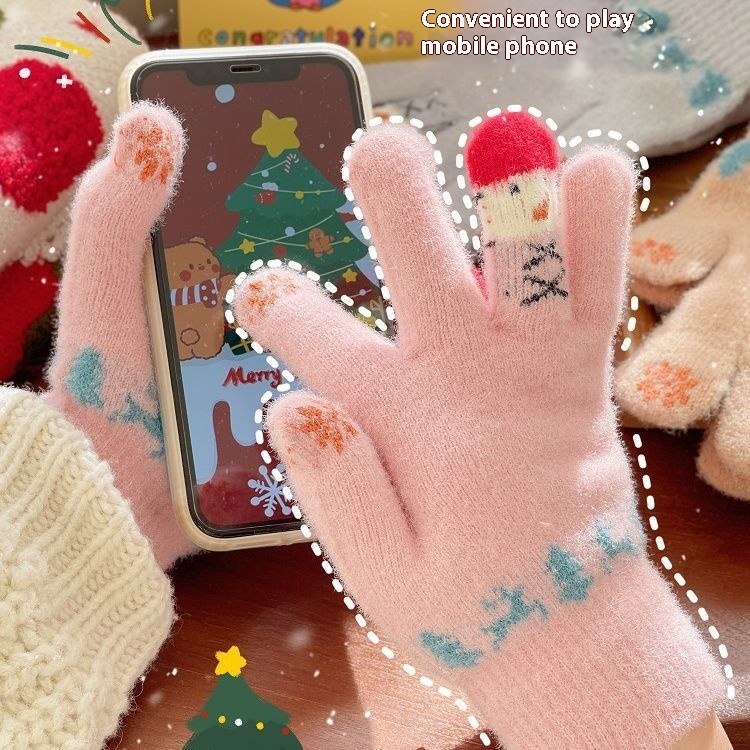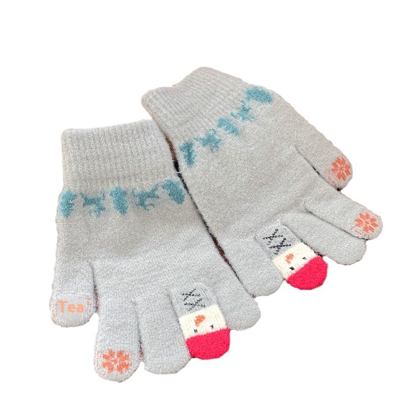 Winter Warm Gloves Plush Cartoon Cute Christmas Snowman Five-finger Gloves Touch Screen