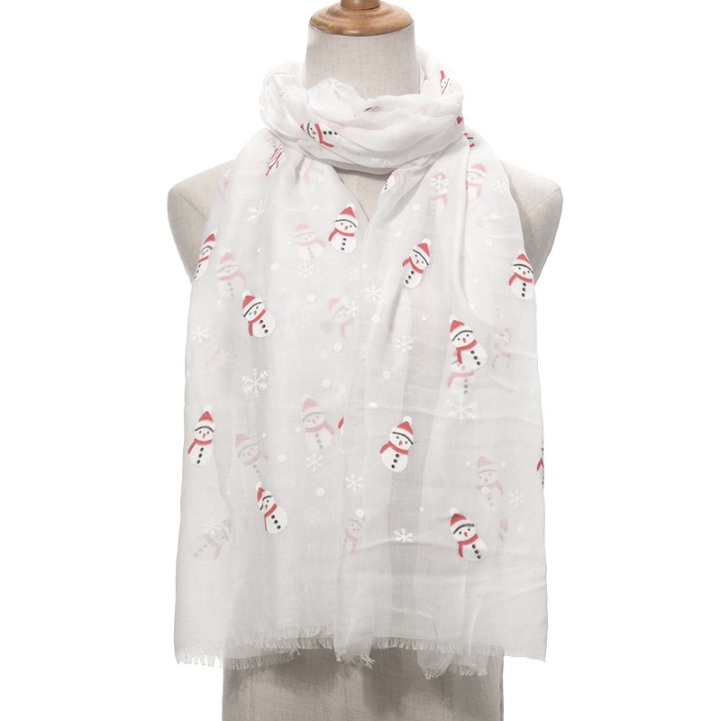 European And American Christmas Snowman Print Scarf Comfortable Warm TRCotton Long Scarf Shawl Polyester Print Neck
