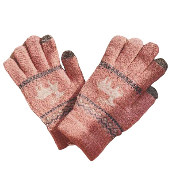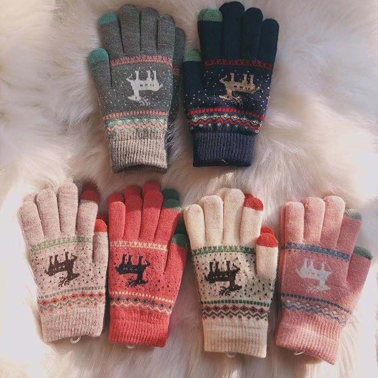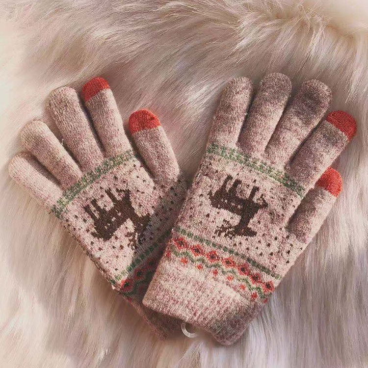 SAutumn And Winter Christmas Deer Touch Screen Gloves Warm Thick Wool Gloves Cycling Cute