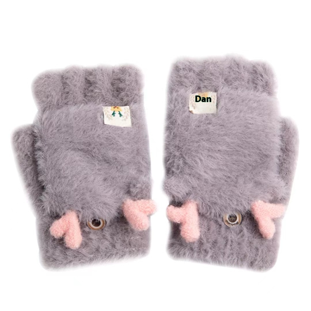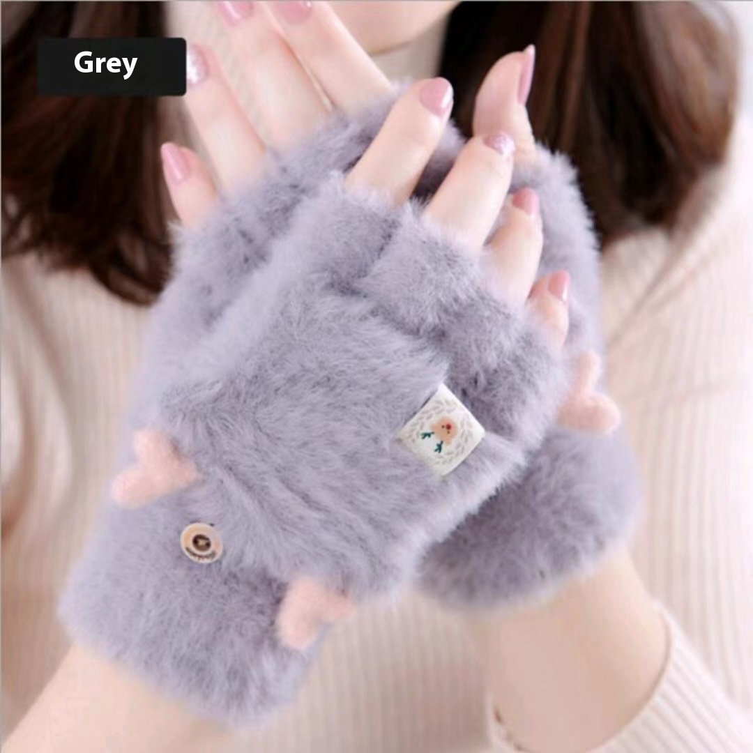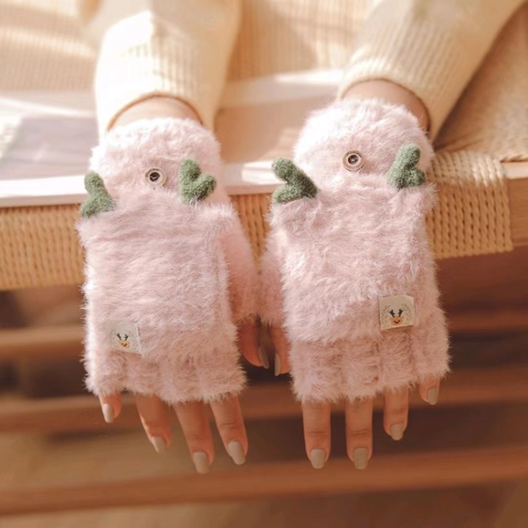 Winter Plush Flip Five-finger Gloves Thickened Japanese Style Cute Cycling Warm Versatile Universal