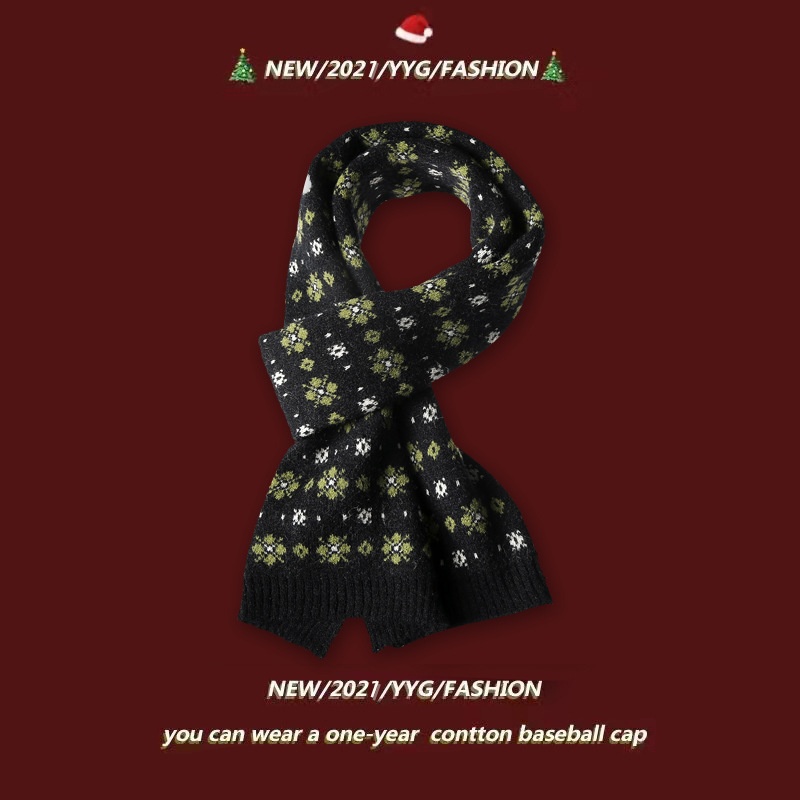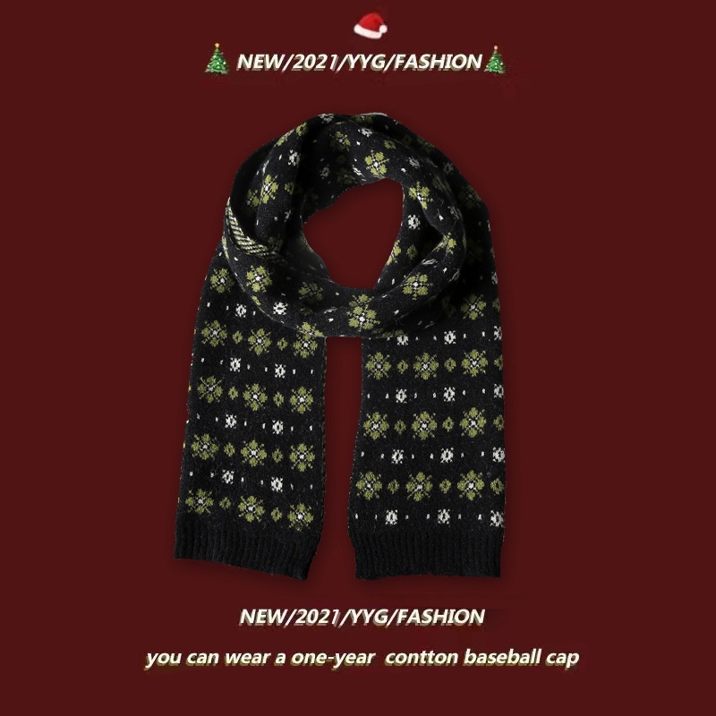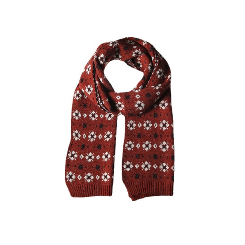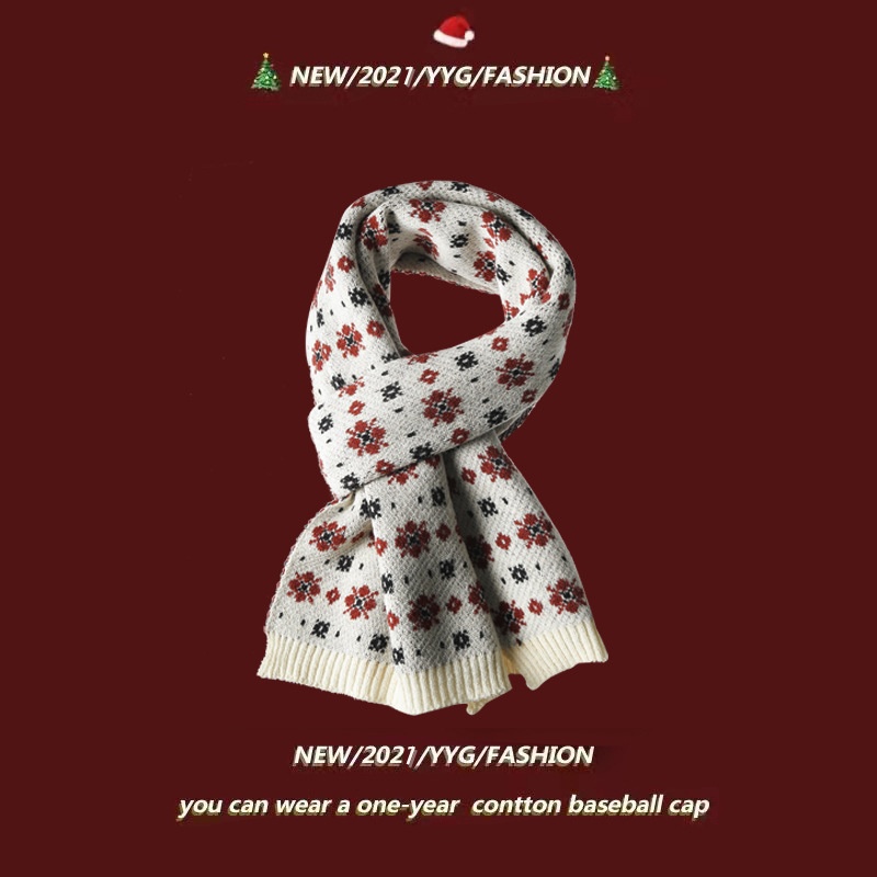 Small Flower Knitted Scarf Women's Winter Korean Style Internet Celebrity All-match Thickening Warm Christmas Knitted Red Scarf