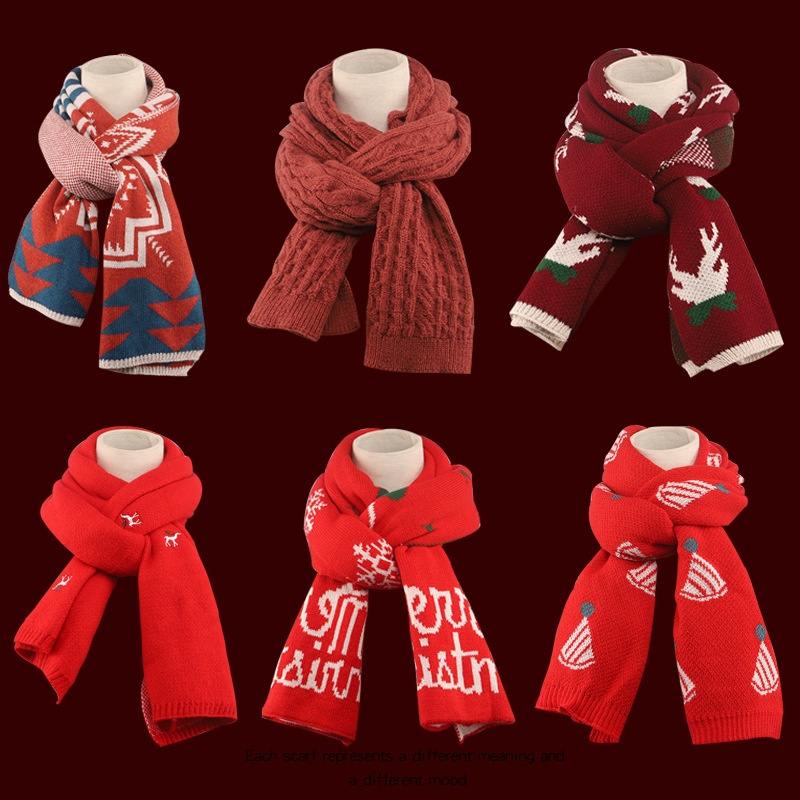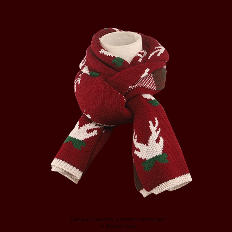 Christmas Gift Red Deer Scarf Women's Versatile Autumn And Winter Warm Lengthened Cute Couple Scarf