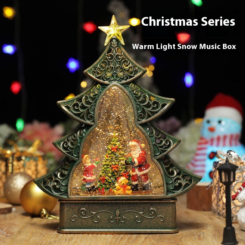 Christmas Music Box:Rotating Carousel With Santa Claus Lantern,Eight-Tone Melody Box