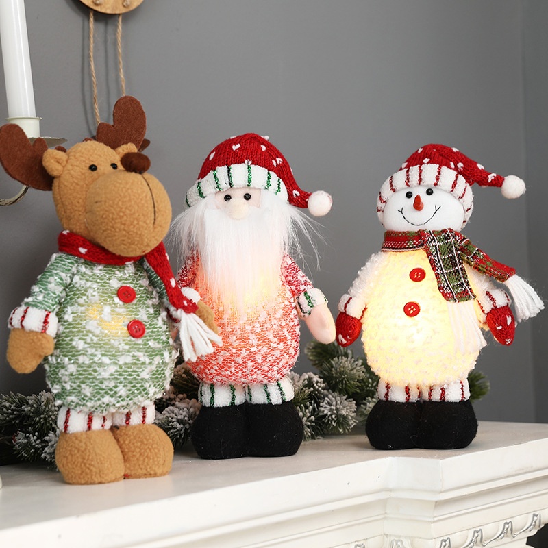 Christmas Decorations Can Glow Santa Claus Snowman Elk Figurine Ornaments Light Standing Doll