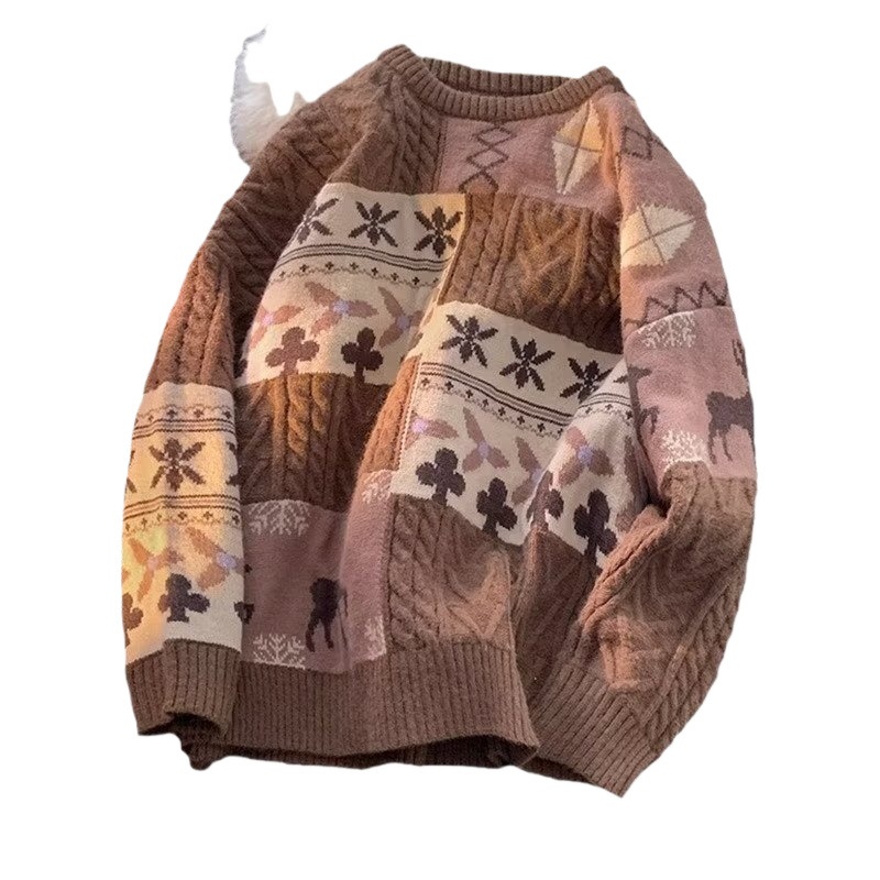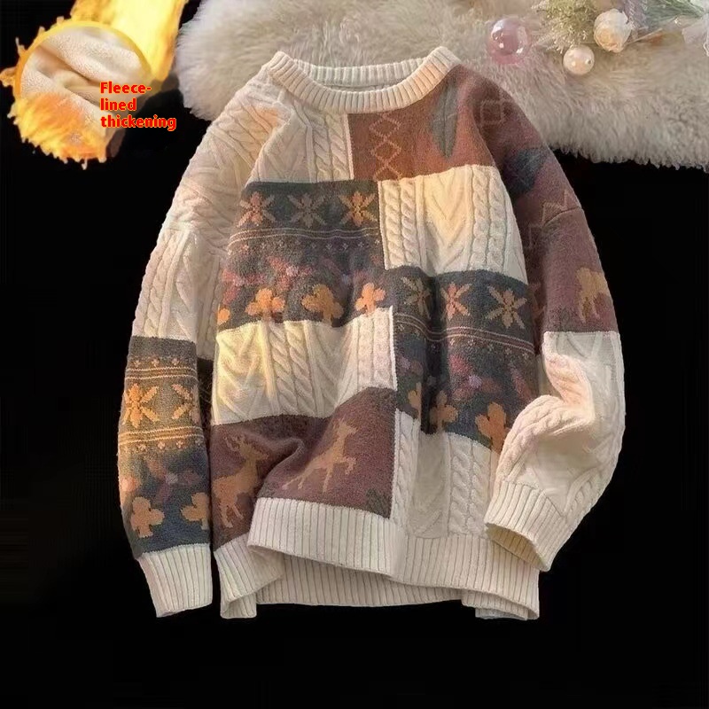 Fleece-Lined Thickened Christmas Sweater:Vintage Hong Kong-Style Knitwear