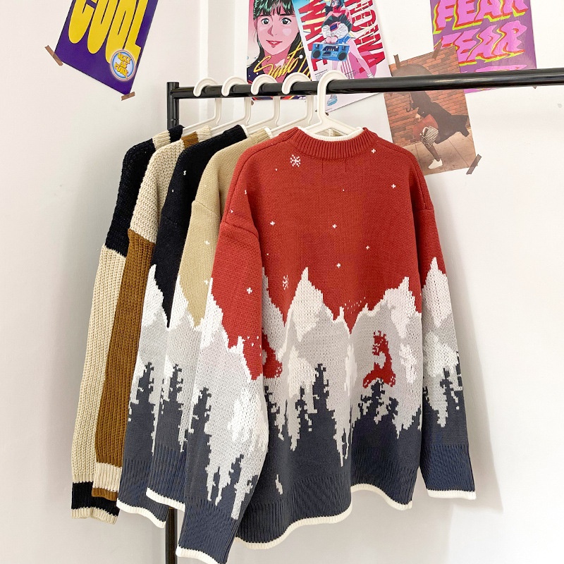 Loose Couple Christmas Sweater Round Neck Knitted Sweater