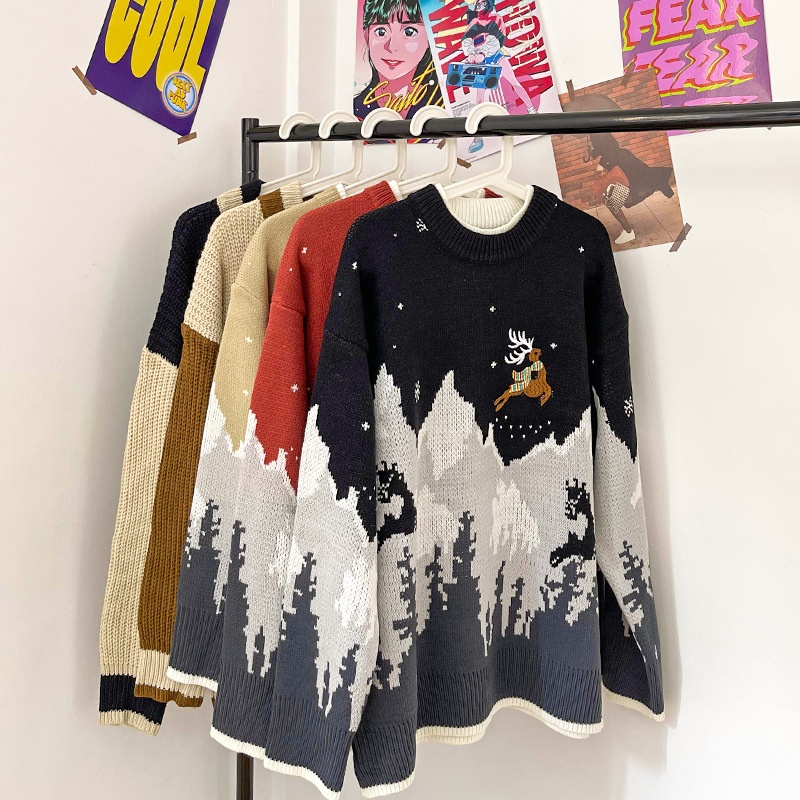 Christmas Rabbit Jacquard Sweater Lazy Style Couple Bottoming Sweater
