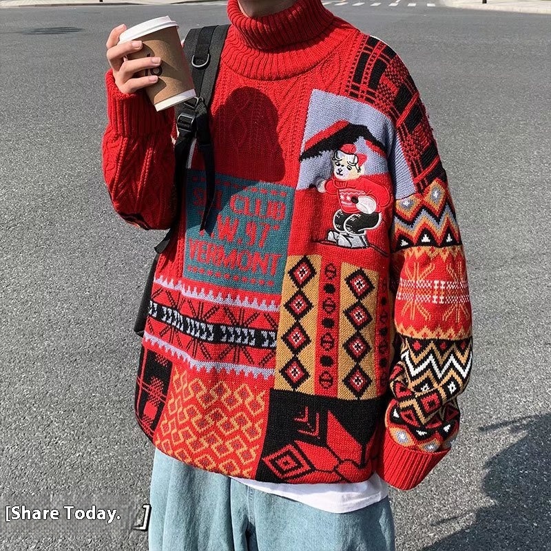 Christmas Bear Sweater:Vintage Turtleneck Knitwear