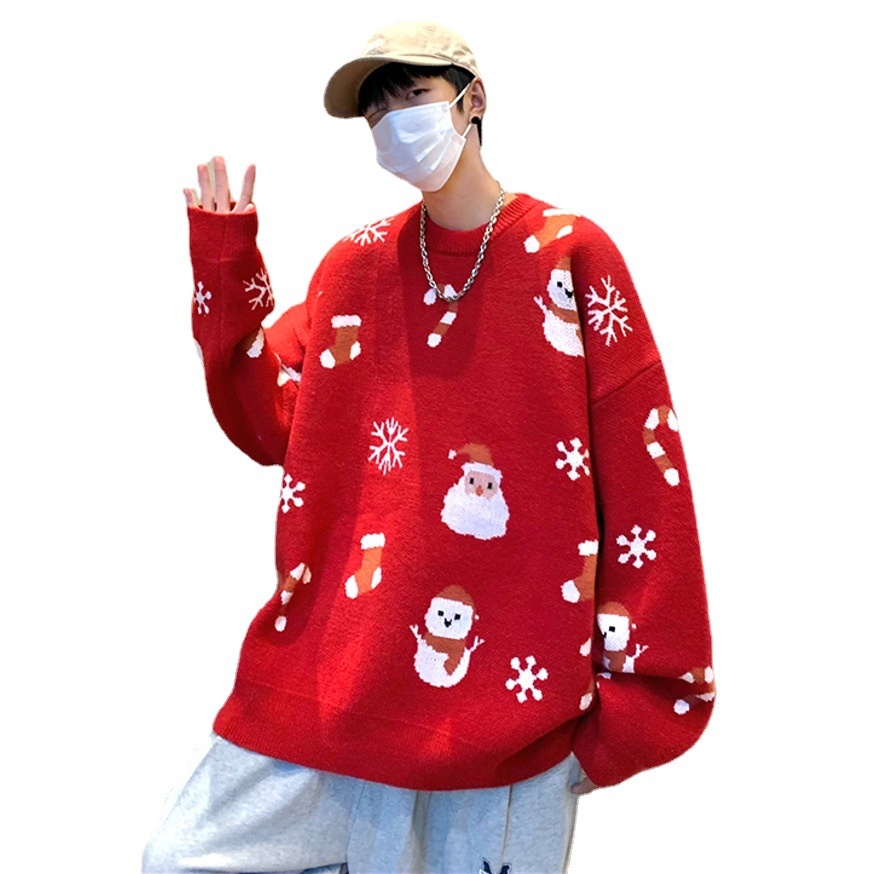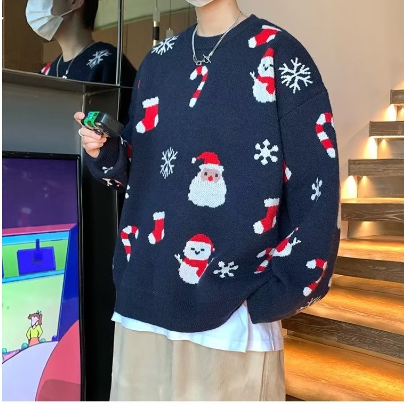 Christmas Sweater Pullover For Men Harajuku Round Neck Casual Loose Long-sleeved Sweater