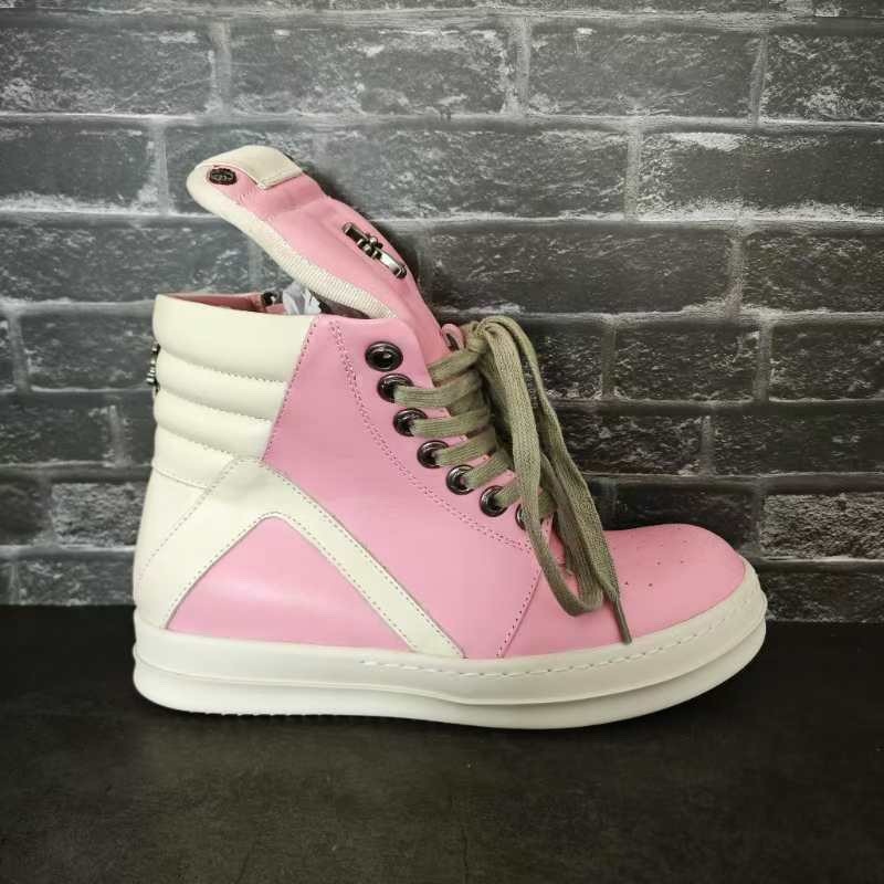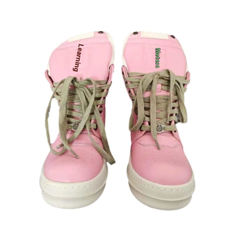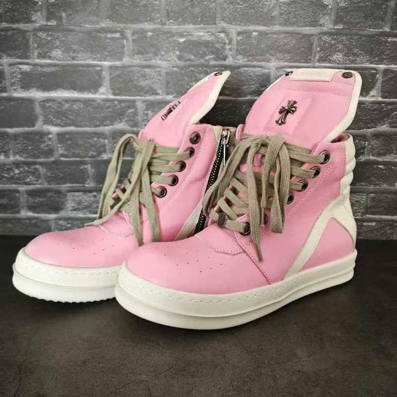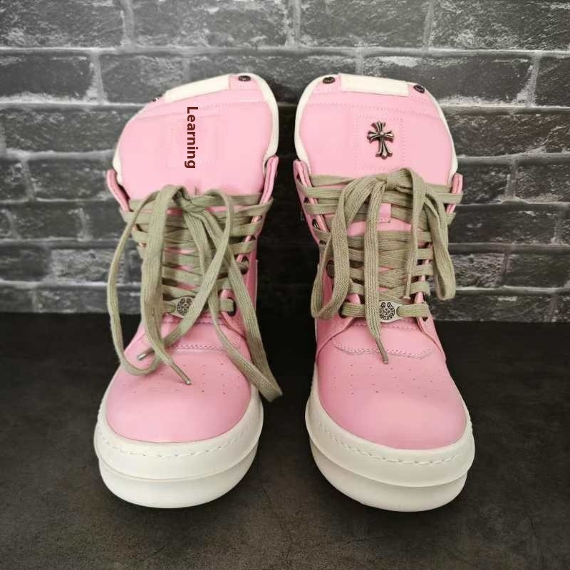 ROBig Hook Inverted Triangle High-top Shoes Black And White Shoes Genuine Leather Large Size Thick Bottom European And Americany Short Boots Pink Couple Boots