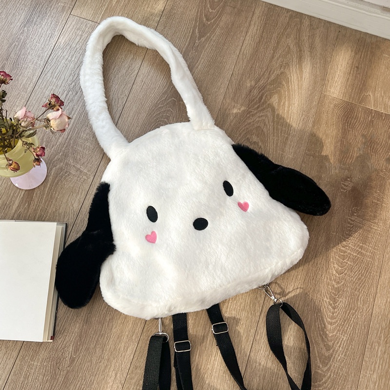Cute Cartoon Big Ear Dog Shoulder Bag Multi-purpose Backpack Plush Puppy Large Capacity Crossbody Bag Student Handbag