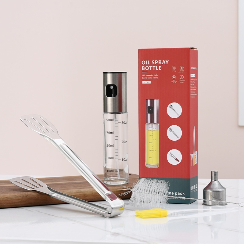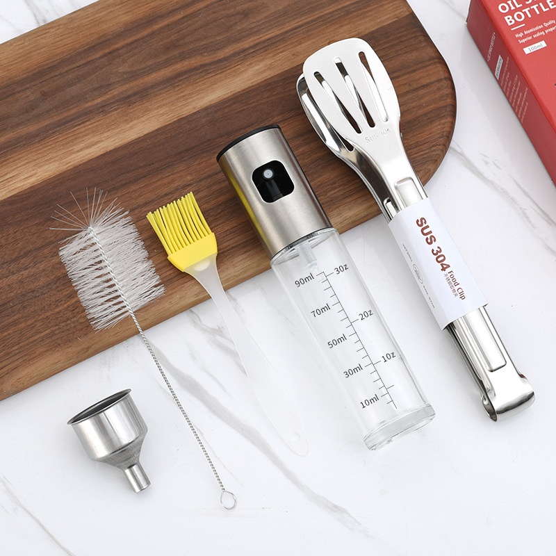 304 Stainless Steel Oil Sprayer Spray Press Type Mist Oil Spray Bottle Barbecue Clip Brush Stainless Steel Funnel Set