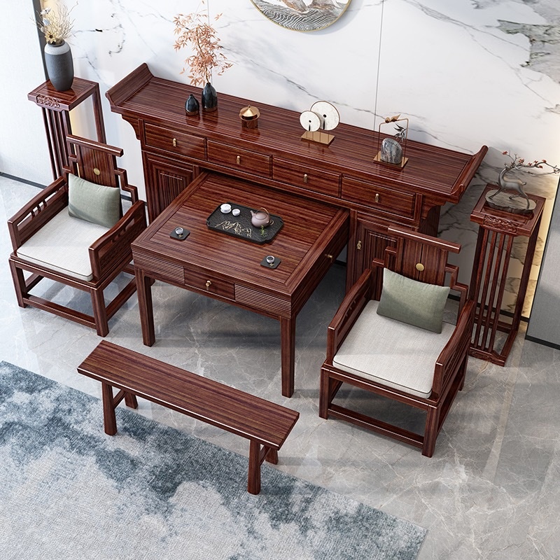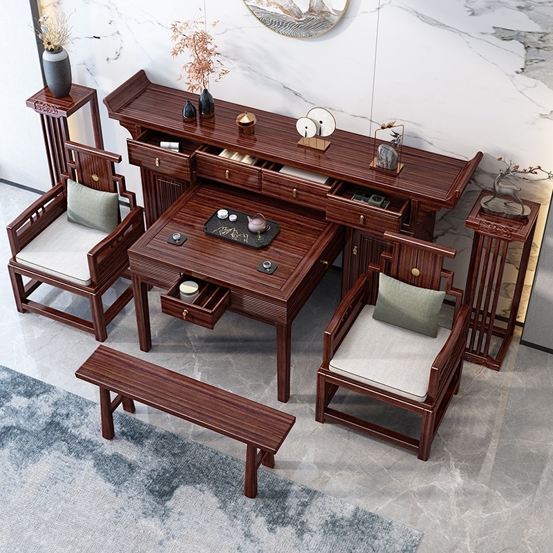Chinese Style Ebony Wood Incense Case Tribute Table Buddha Table Rural Villa Central Hall Six-piece Set Solid Wood Altar Eight Immortals Table Combination