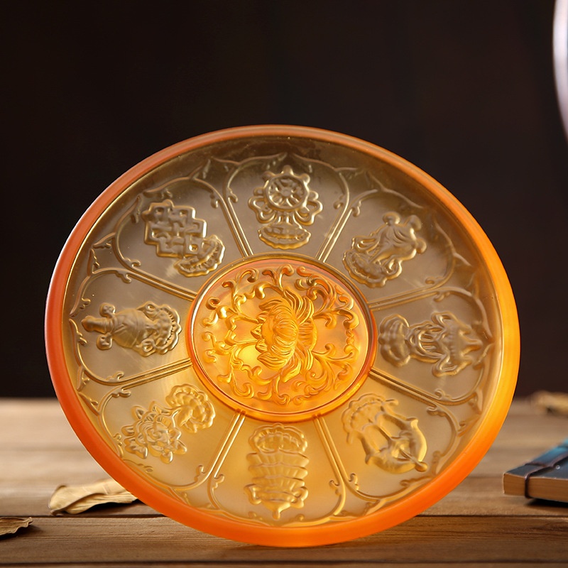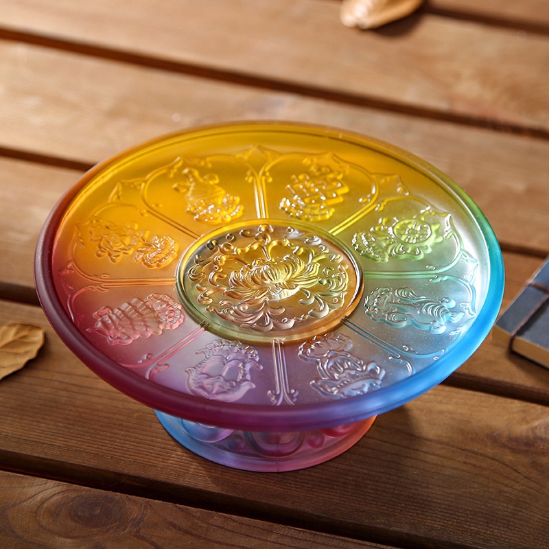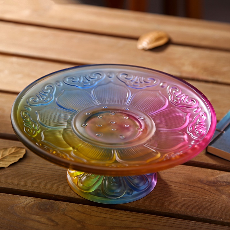 B6 J1 Colored Glazed Fruit Plate Home Living Room Tea Table Buddha Serving Fruit Plate Lotus Flower Serving Plate Tribute Fruit Plate Eight Auspicious Fruit