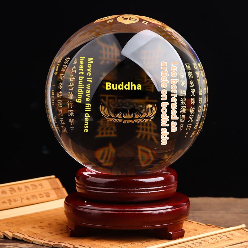 Crystal Ball Carving Buddhist Scripture Prajna Heart Sutra Six Words True Feng Shui Ball Buddha Table Porch Ornaments