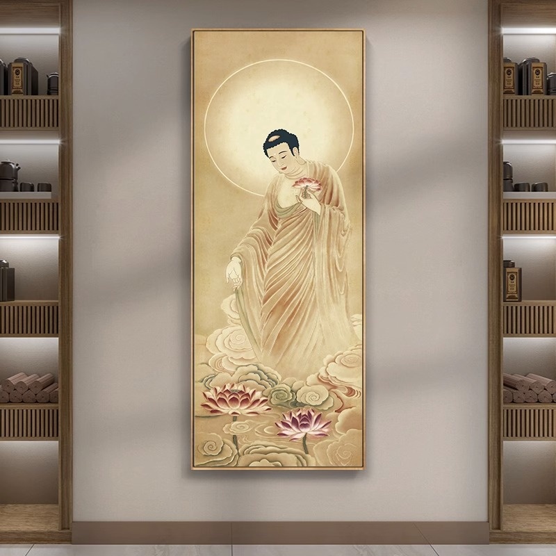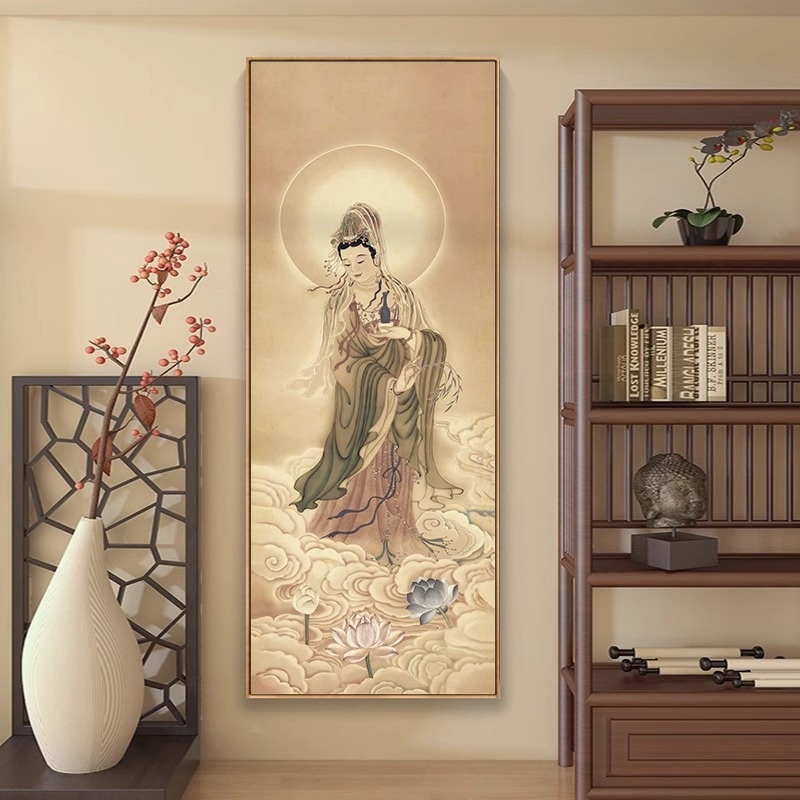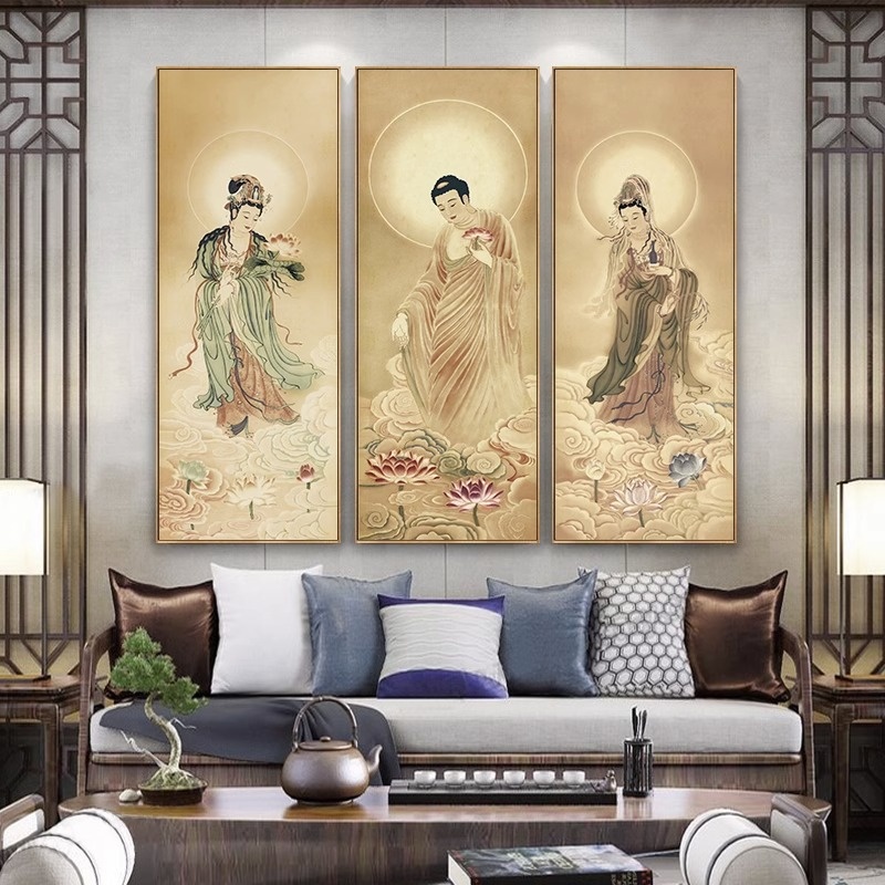 Western Three Holy Buddhas Guanyin Bodhisattva Buddha Murals Zen Living Room Background Wall Decoration Painting Central Hall Altar Hanging Painting