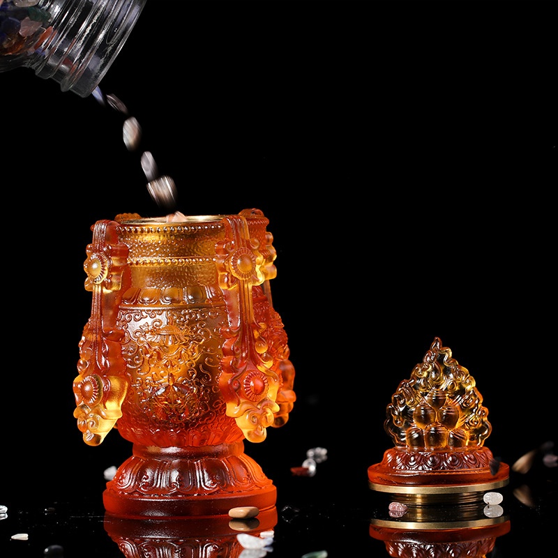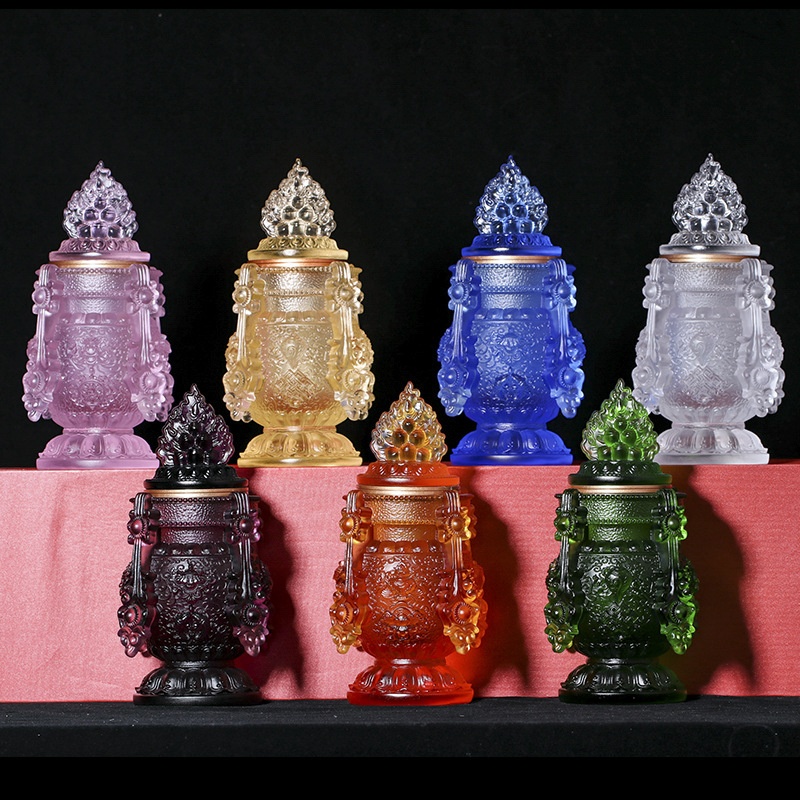 Coloured Glaze Eight Auspicious Aquarius Longevity Mani Bottle Tibetan Buddhism Dharma Temple Buddhist Table For Buddhist Utensils