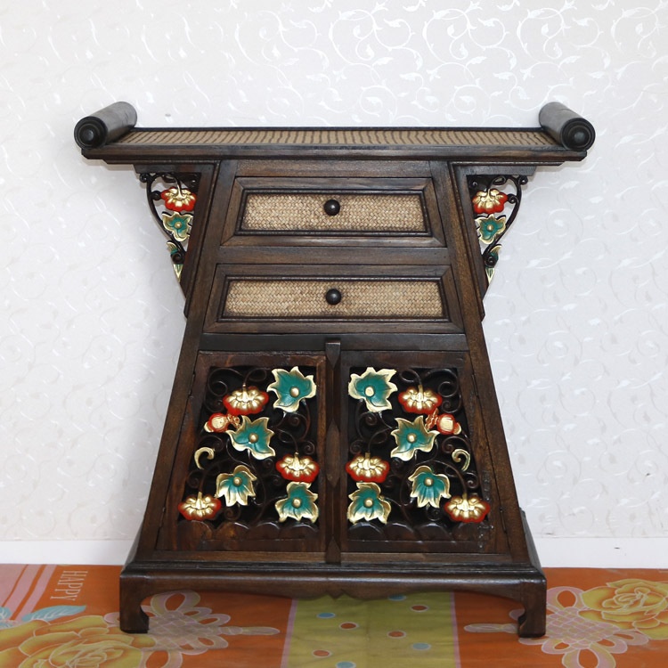 Thai Solid Wood Porch Cabinet Buddha Table Niche Southeast Asian Style Decorative Cabinet Retro Creative Living Room Storage Locker