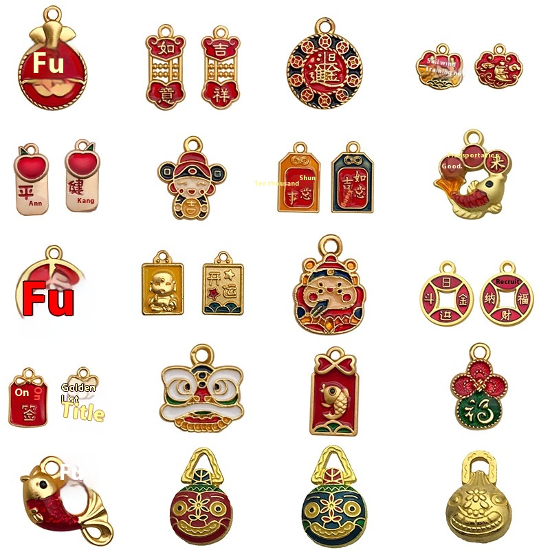 Mixed20 Year Lion Pendants Chinese Style Alloy Blessing Oil Drop Diy Jewelry Accessories Pendant Keychain Material