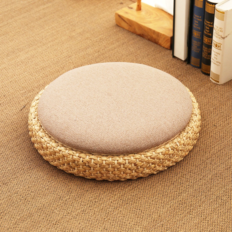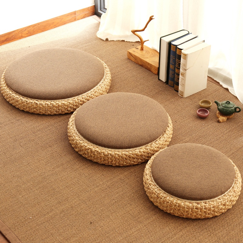 Japanese-style Rattan-woven Linen Futon Cushion Thickened Meditation Cushion Living Room Sitting Pier Kneeling Cushion Lazy Floor Cushion