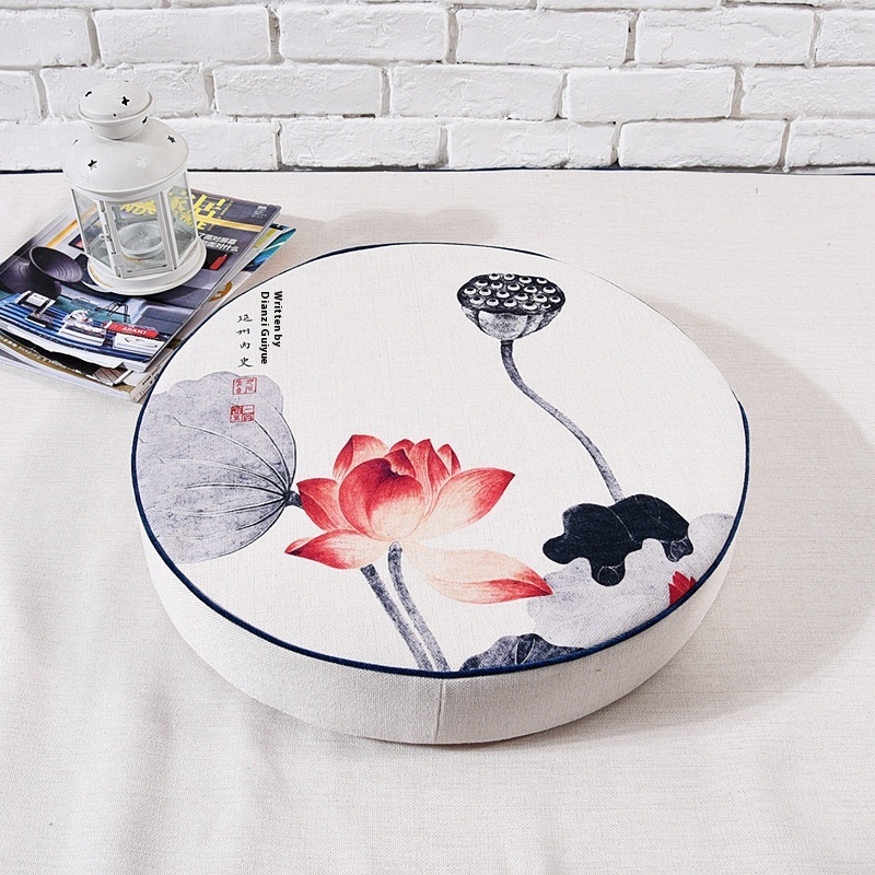 Custom Custom Chinese Lotus Meditation Meditation Futon Cushion Cotton Linen Fabric Round Padded Cushion