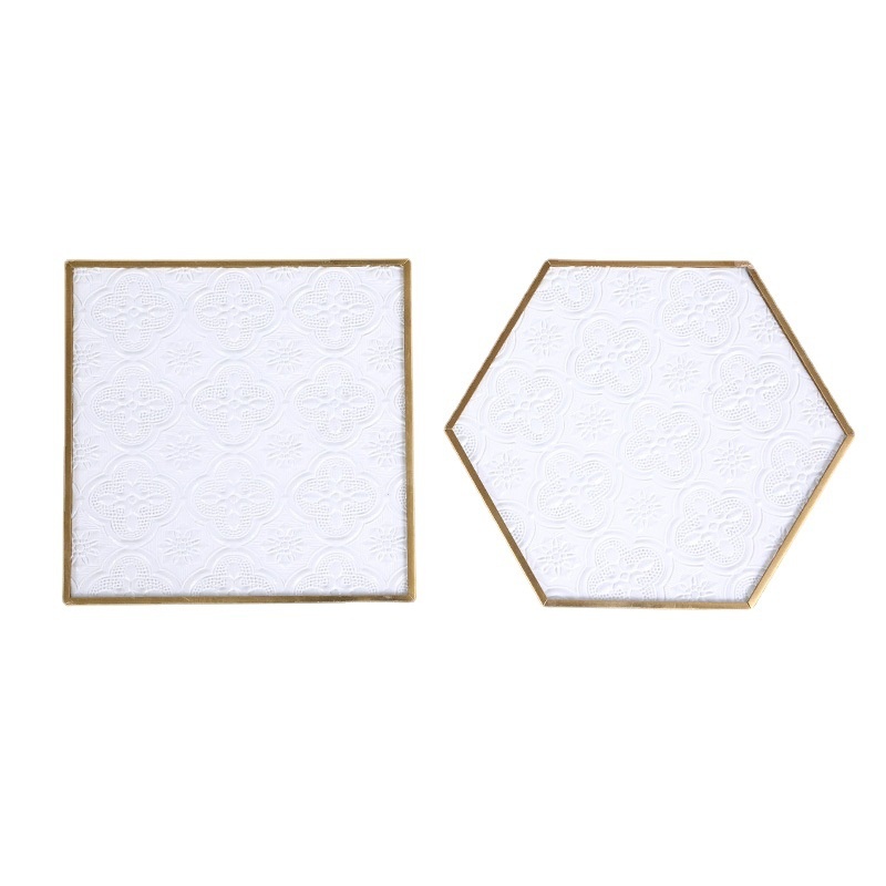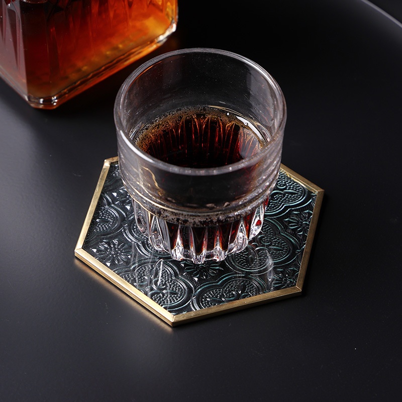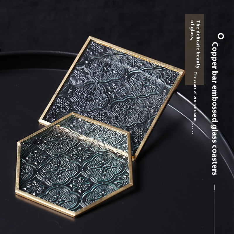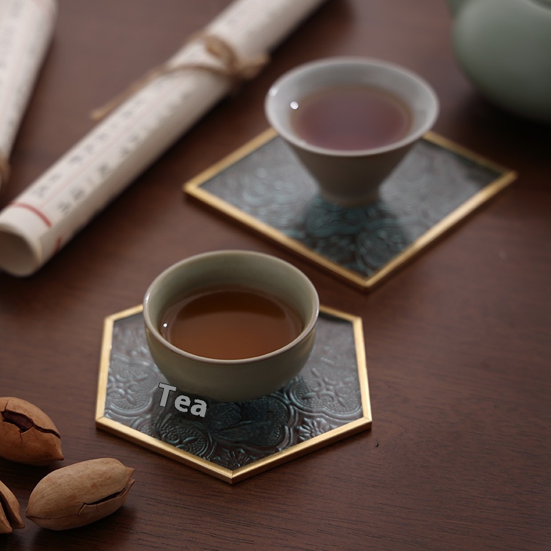 Begonia Flower Glass Coasterulation Pad Transparent Copper Edge Teacup Holder Mat Japanese Square Tea Ceremony Zen Coaster