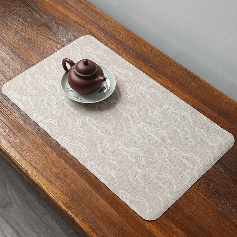 BG54 Waterproof Tea Mat Auspicious Cloud Pattern Series Wrinkle-free Table Runner Tea Placemat Linen Chinese Tea Table Zen